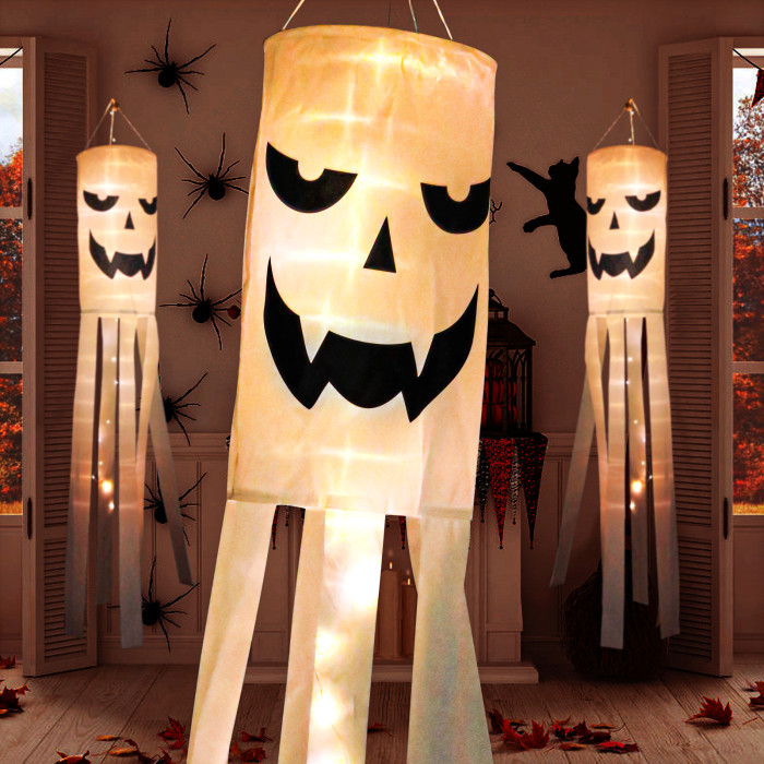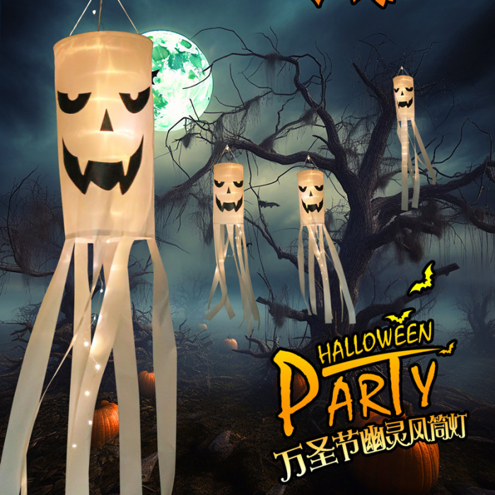 萬聖節發光幽靈吊鬼風筒旗掛件鬼節恐怖氛圍戶外掛樹裝飾布置