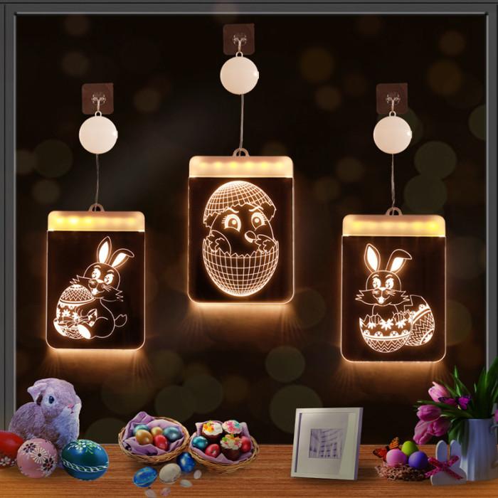 發光彩蛋LED彩燈吸盤掛飾復活節室內窗戶節日氛圍感裝飾場景布置