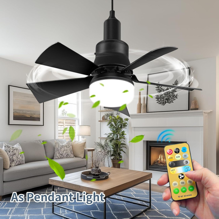 LEDe27風扇燈遙控多功能三色調光家用臥室兒童書房客廳風扇燈