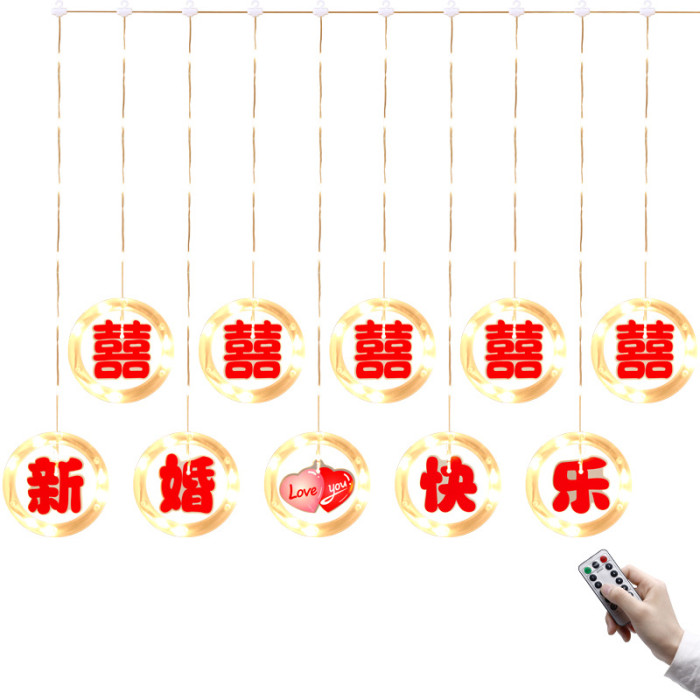 新婚快樂喜字冰條燈led彩燈室內窗簾婚房婚禮氛圍裝飾布置用品