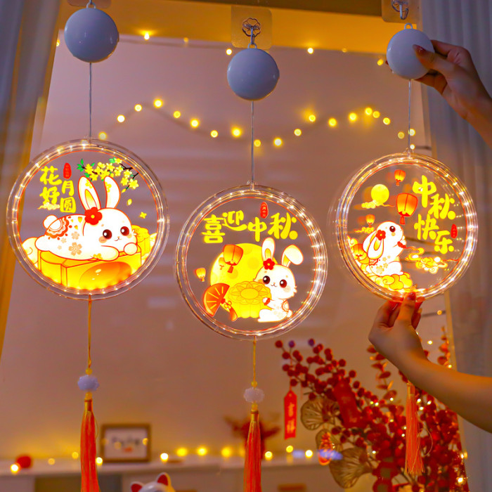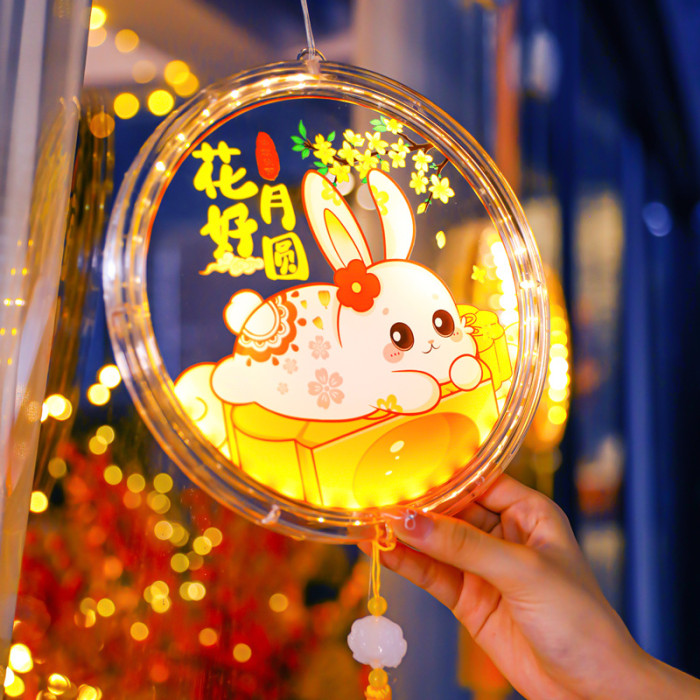 發光玉兔花好月圓吸盤led彩燈掛件中秋節日氛圍室內裝飾布置掛飾