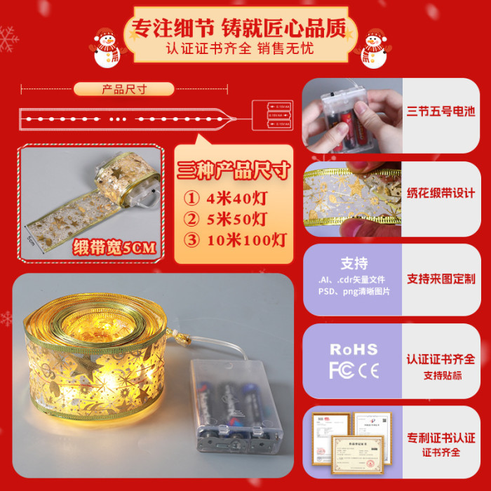 發光絲帶綢緞led燈串聖誕節氛圍掛聖誕樹裝飾場景布置閃燈串