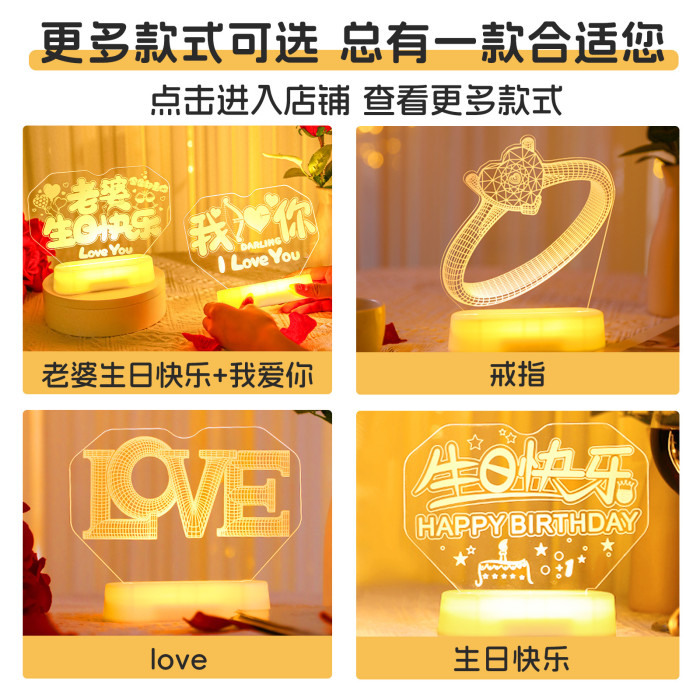 發光老婆生日快樂led彩燈牌擺件室內求婚表白氛圍場景布置裝飾