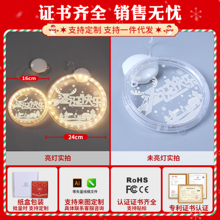 發光聖誕快樂吸盤LED彩燈聖誕節日氛圍櫥窗場地裝飾布置掛件