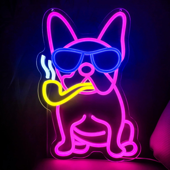 臘腸犬鬭牛犬喝酒貓滑板狗霓虹燈usb供電月亮貓led燈牌