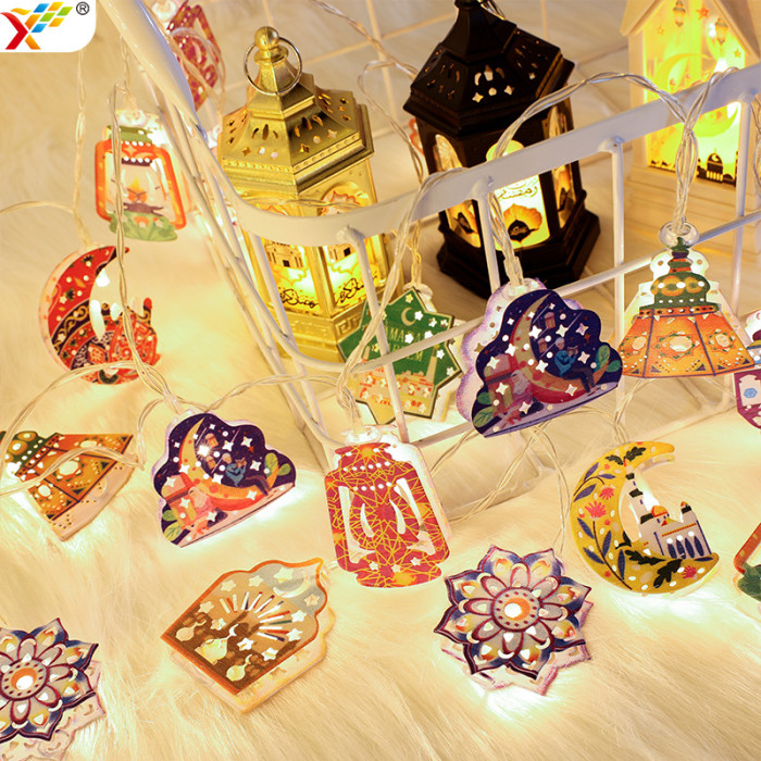 發光鐵藝星月城堡led彩燈串阿拉伯古爾邦節氛圍客廳裝飾布置掛飾