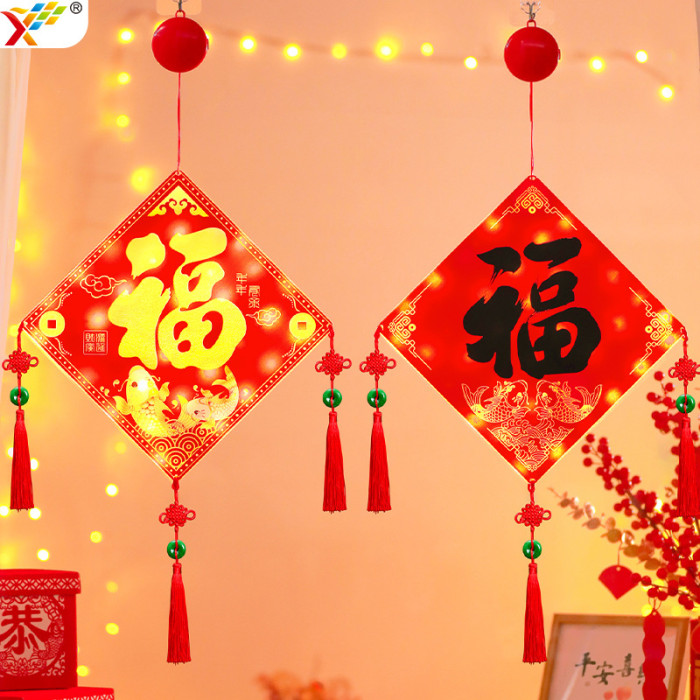 新年發光福字吸盤led彩燈掛件2025蛇年春節氛圍室內櫥窗裝飾布置