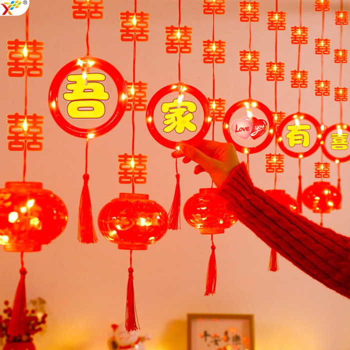 吾家有喜LED彩燈串小掛件男方結婚房間沙發背景牆面氛圍裝飾布置