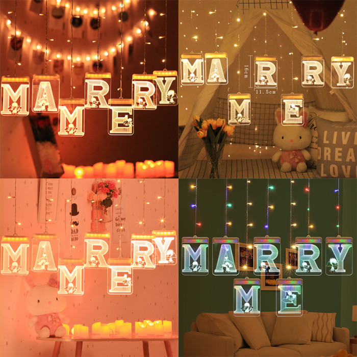 發光marry me字母冰條LED彩燈串七夕情人節求婚氛圍室內裝飾布置