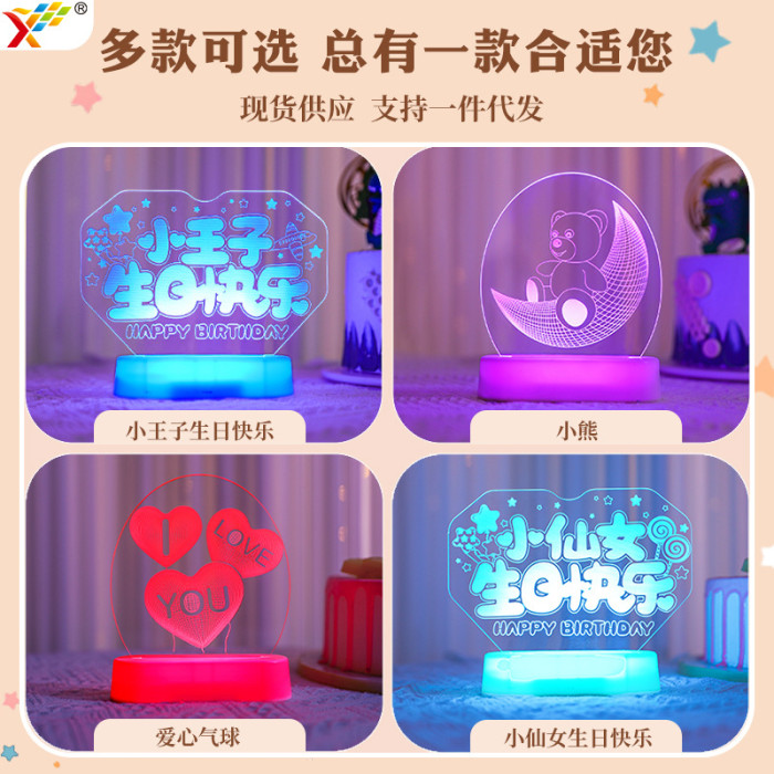 發光小王子生日快樂led彩燈擺件生日氛圍桌面場景裝飾布置小夜燈
