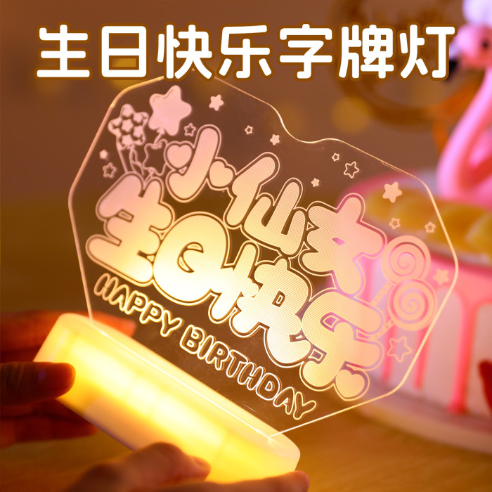 發光小仙女生日快樂led彩燈牌擺件室內桌面氛圍裝飾布置小夜燈