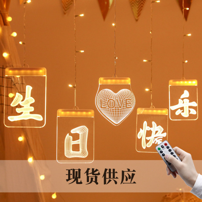 發光生日快樂冰條LED彩燈兒童生日宴會氛圍室內窗簾裝飾布置掛飾