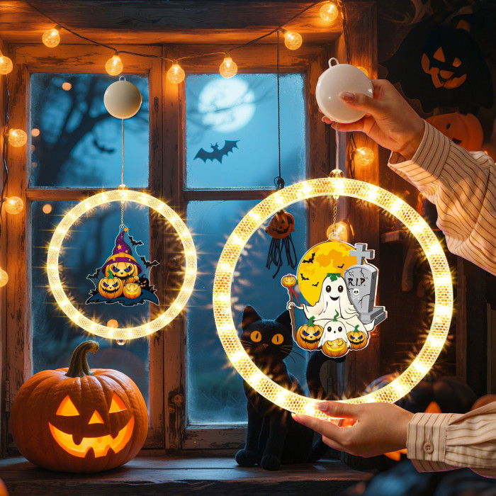 發光萬聖節幽靈南瓜跑馬led彩燈掛件鬼節氛圍櫥窗裝飾布置掛飾