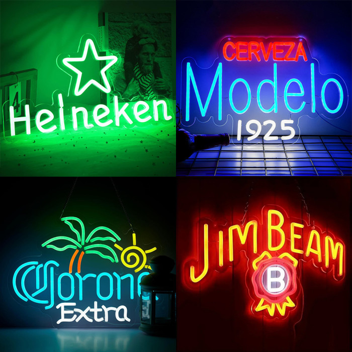 Heineken啤酒威士忌造型霓虹燈酒吧裝飾燈牌車庫透明亞克力led燈