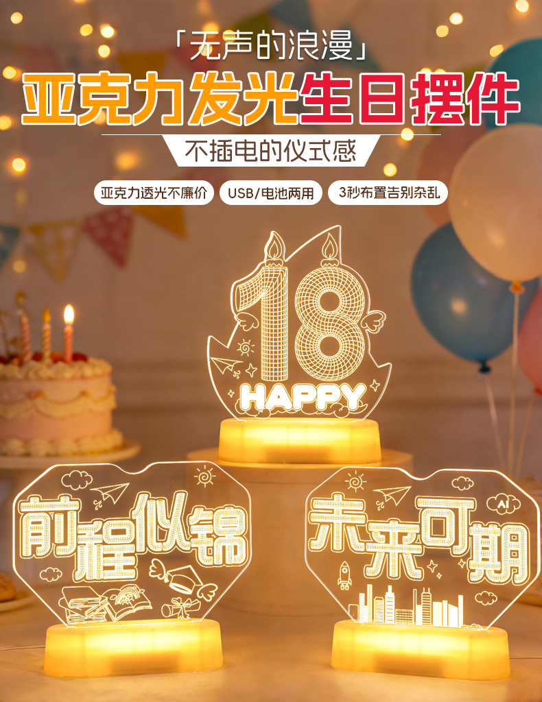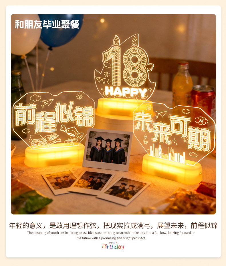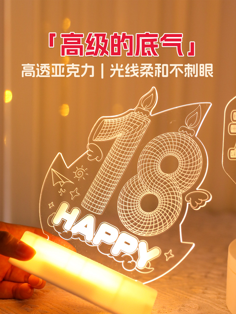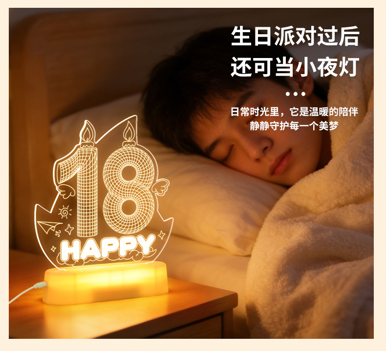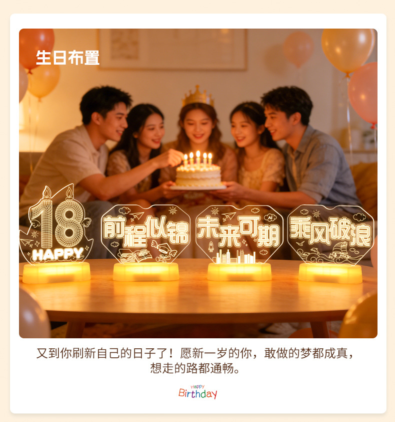 霓虹發光18嵗字母生日快樂燈牌擺件生日成人禮氛圍裝飾布置led燈