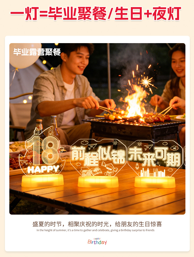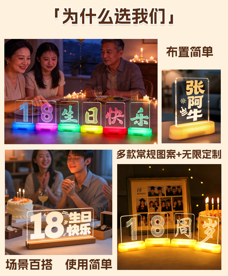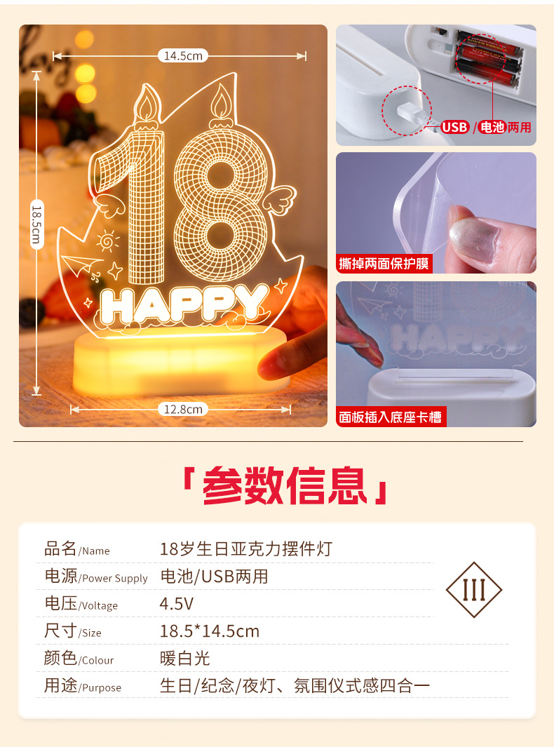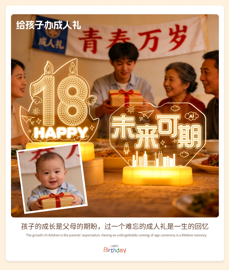 霓虹發光18嵗字母生日快樂燈牌擺件生日成人禮氛圍裝飾布置led燈