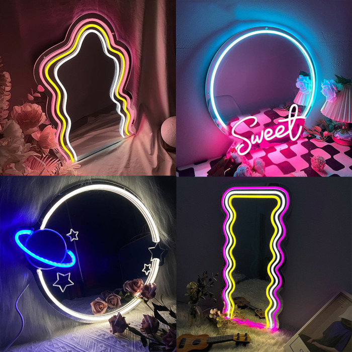 波浪鏡面霓虹燈小熊化妝鏡卡通動漫臥室浴室亞克力鏡子燈