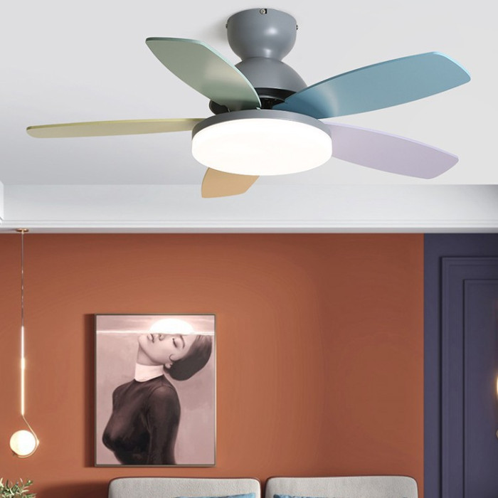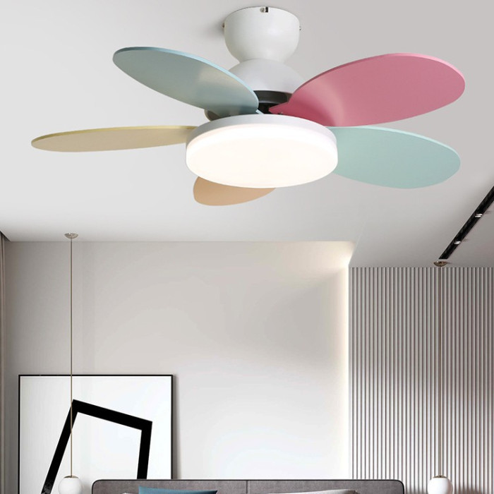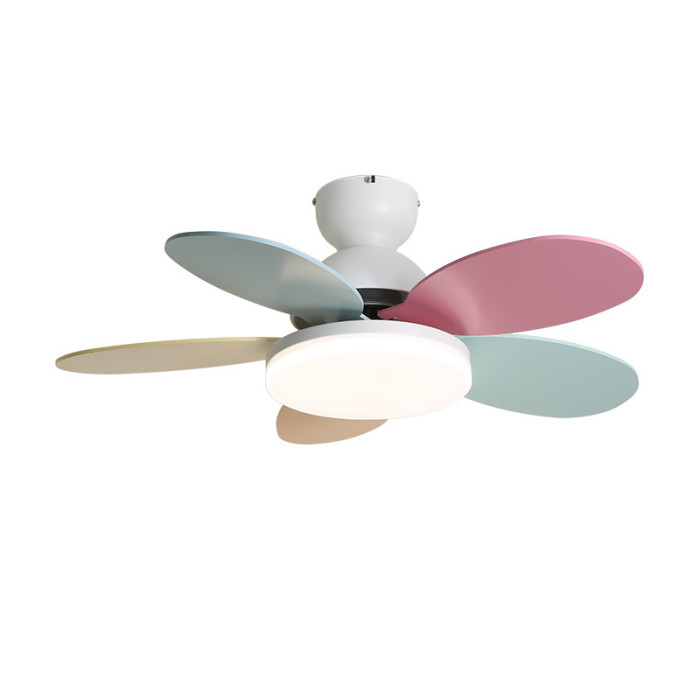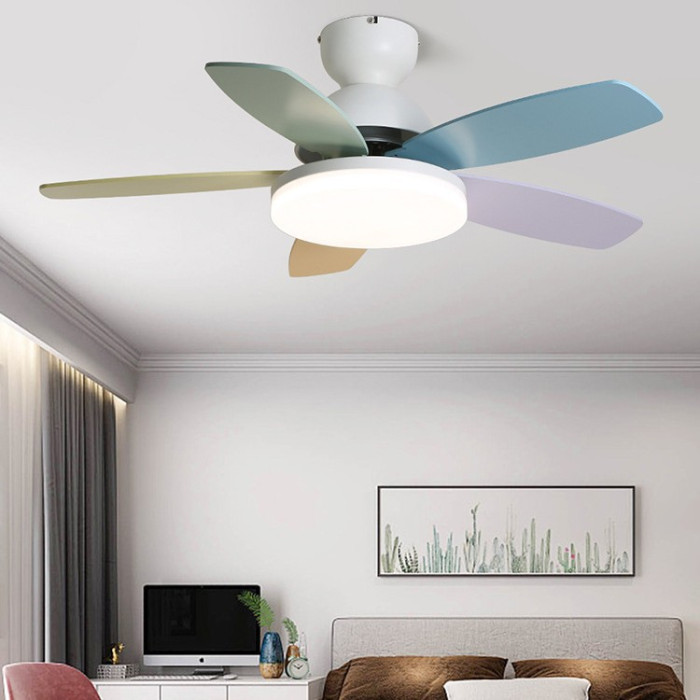 可愛彩色5葉吊扇燈吸頂風扇燈兒童房餐廳帶燈風扇吊燈家用吊扇燈