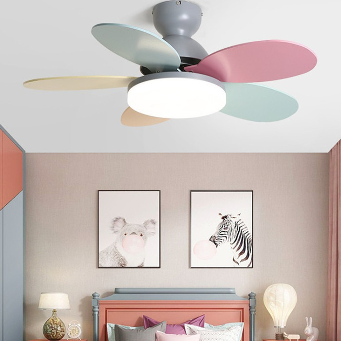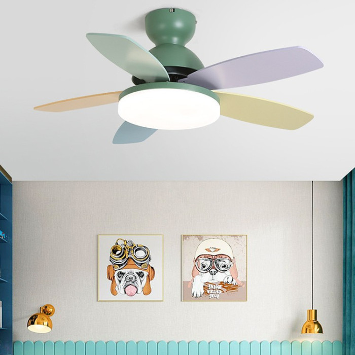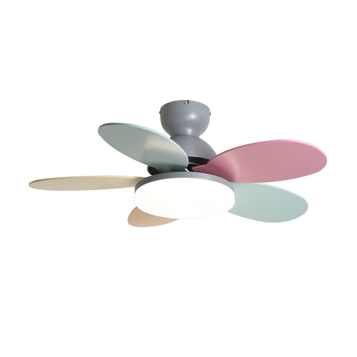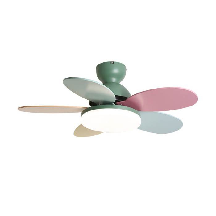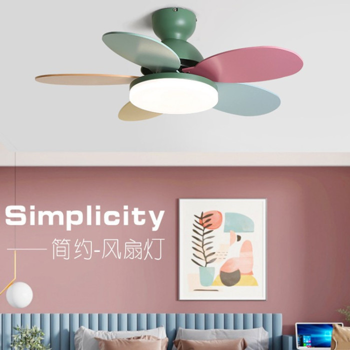 彩色5葉吊扇燈多巴胺吸頂風扇燈兒童房餐廳帶燈風扇吊燈家用吊扇