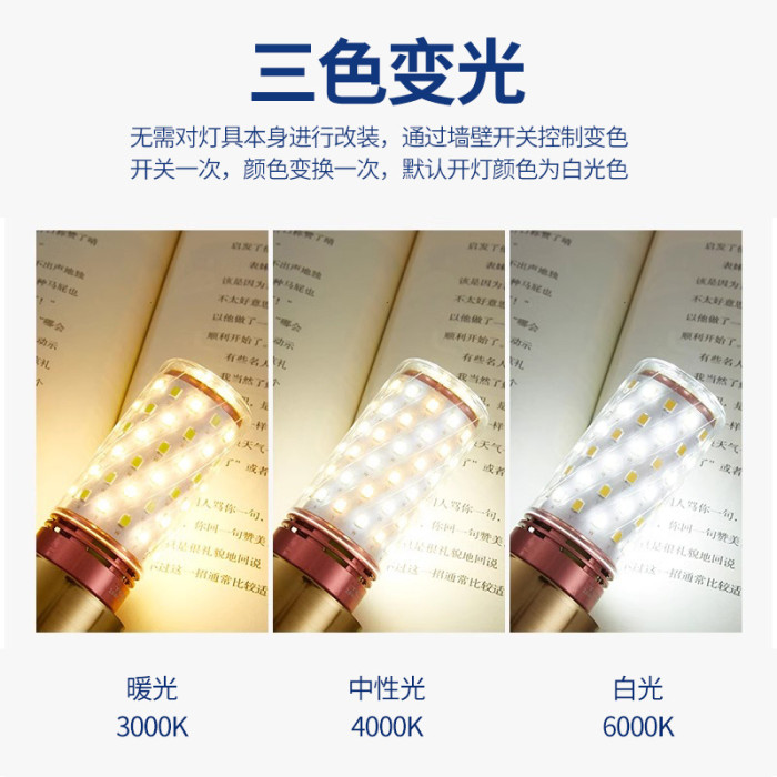 全光譜LED燈泡玉米燈家用e27螺紋e14螺口節能燈三色光源照明吊燈