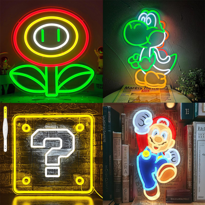 卡通動漫蘑菇恐龍霓虹燈遊戯馬裡奧led燈牌兒童臥室發光裝飾禮物
