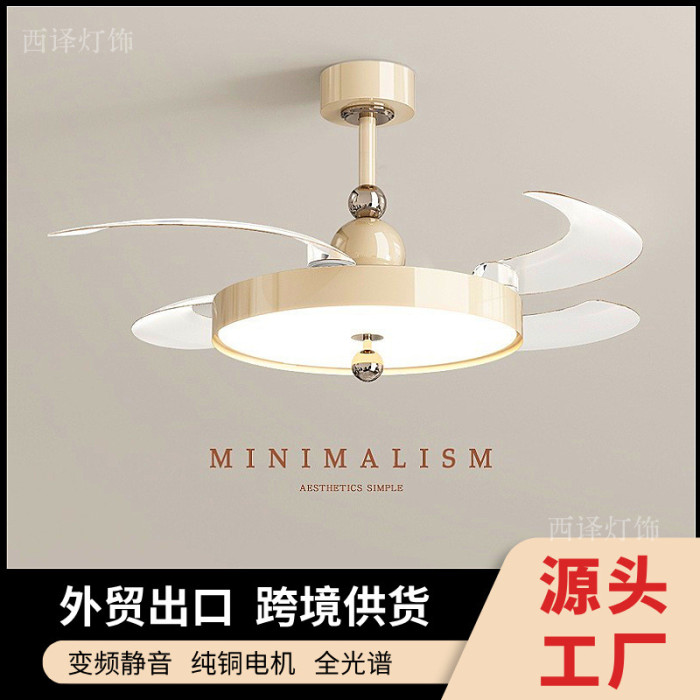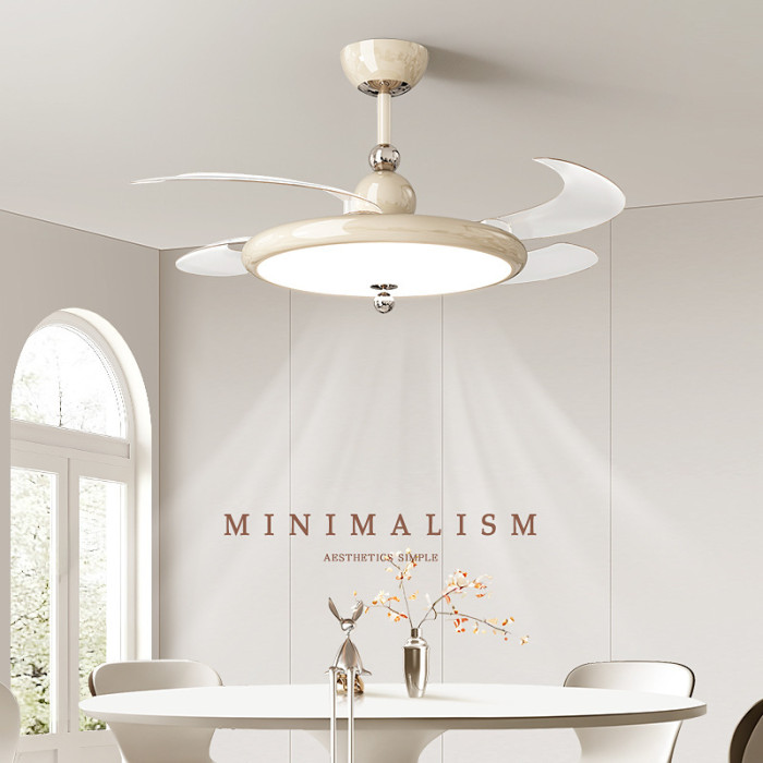 奶油中古隱形風扇燈意式餐廳吸頂燈臥室高級時尚全光譜led護眼燈