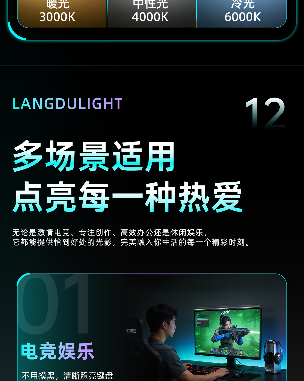 朗度桌上型電腦螢幕掛燈護眼學習燈大學生顯示器台燈電競專用螢幕燈