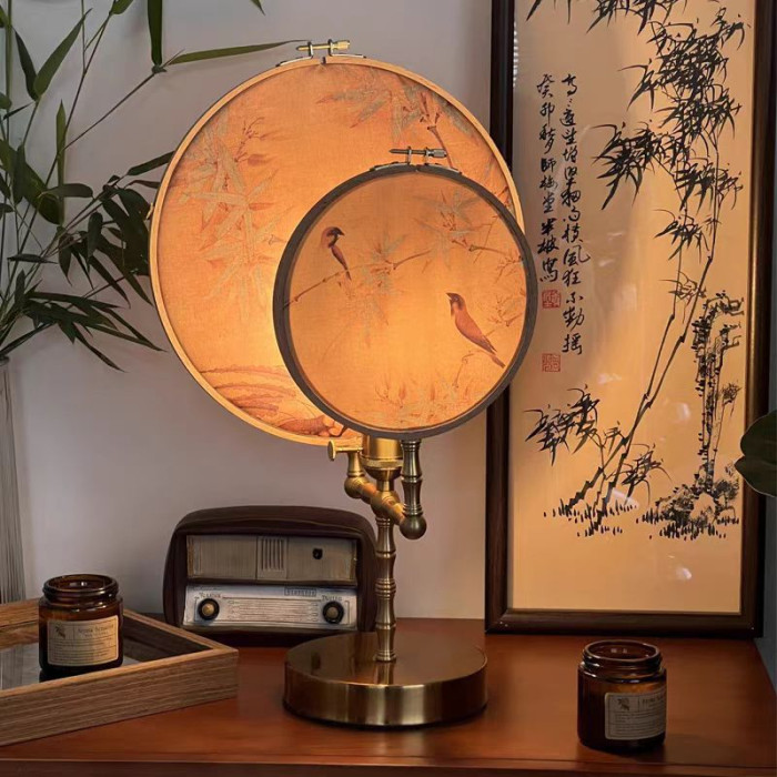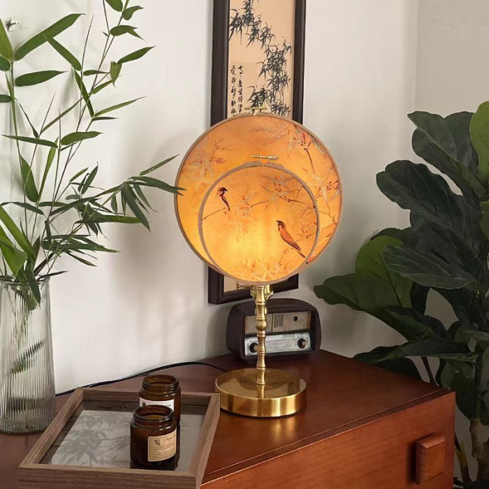新中式台燈臥室床頭櫃風茶室書房復古團扇輕奢擺件侘寂風