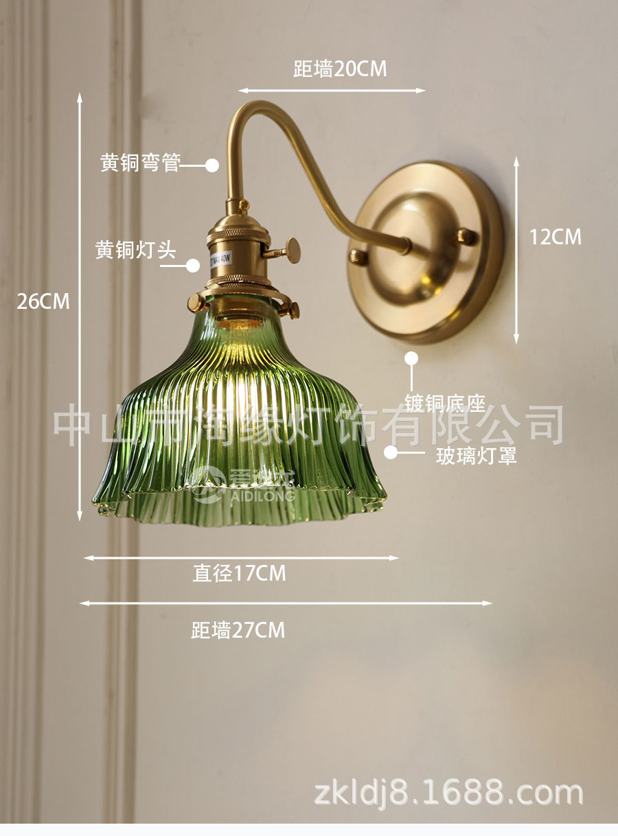 復古黃銅綠色玻璃壁燈現代北歐床頭壁燈簡約衛生間浴室鏡鏡前燈