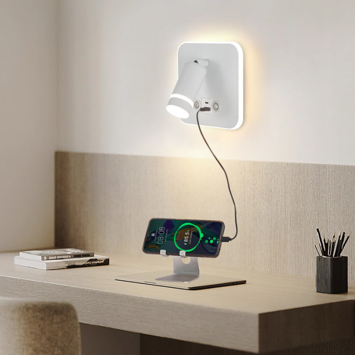 新款創意觸控壁燈簡約床頭閲讀燈帶USB壁燈酒店客房燈三色調光燈