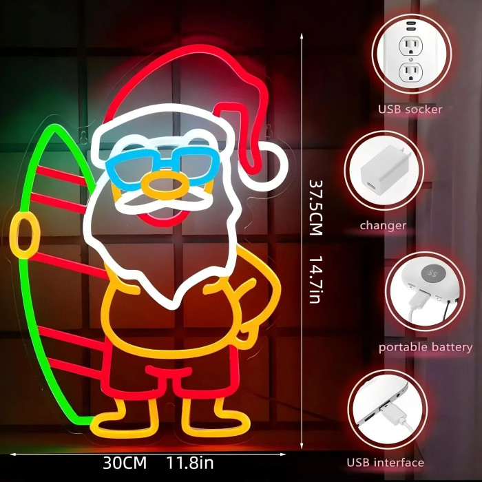 聖誕節麋鹿爆款霓虹燈雪人聖誕老人字母USB聖誕裝飾燈