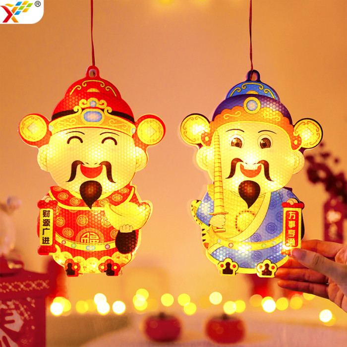 發光財神爺led彩燈掛件新年春節元宵喜慶氛圍櫥窗裝飾布置掛飾