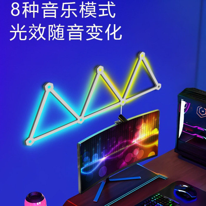 智能RGB幻彩拼接電競桌搭氛圍燈藍牙可連LED星座量子拾音壁燈