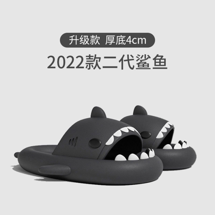 鯊魚拖鞋女夏室內居家用浴室洗澡情侶卡通女男士厚底EVA涼拖外穿