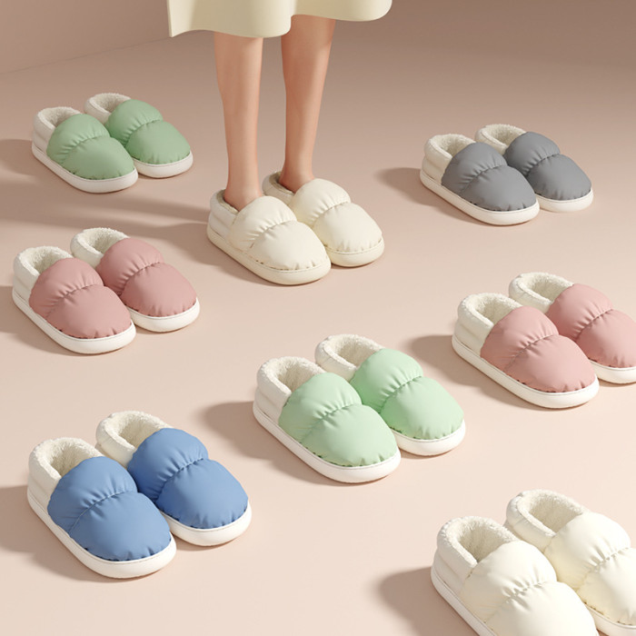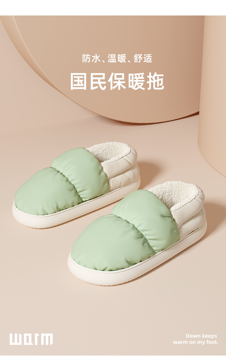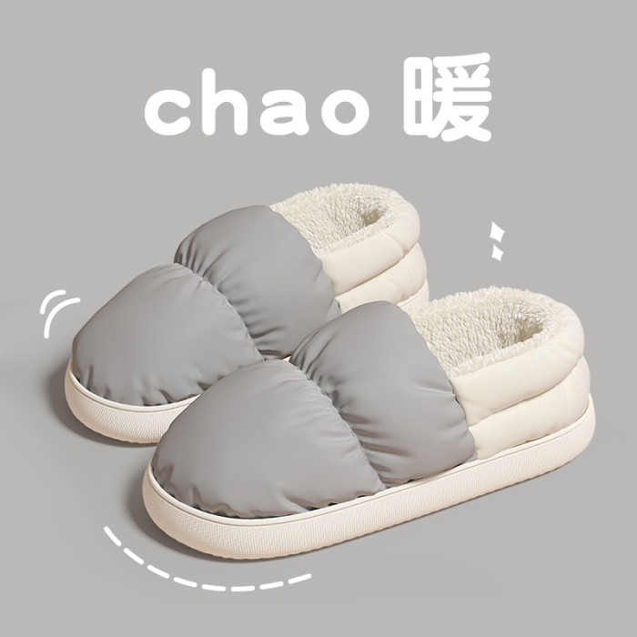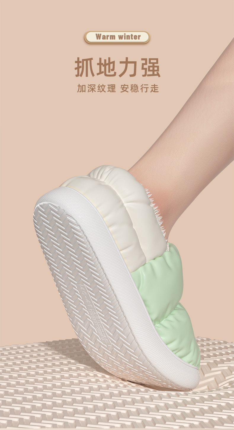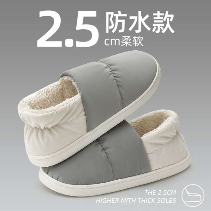 踩屎感棉拖鞋男冬季包跟外穿加絨居家居室內厚底防水月子棉拖鞋女