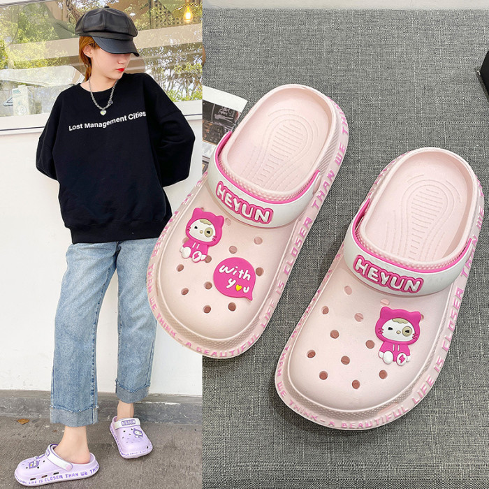 拖鞋女外穿夏季韓版可愛ins仙女風護士包頭半拖鞋厚底沙灘洞洞鞋