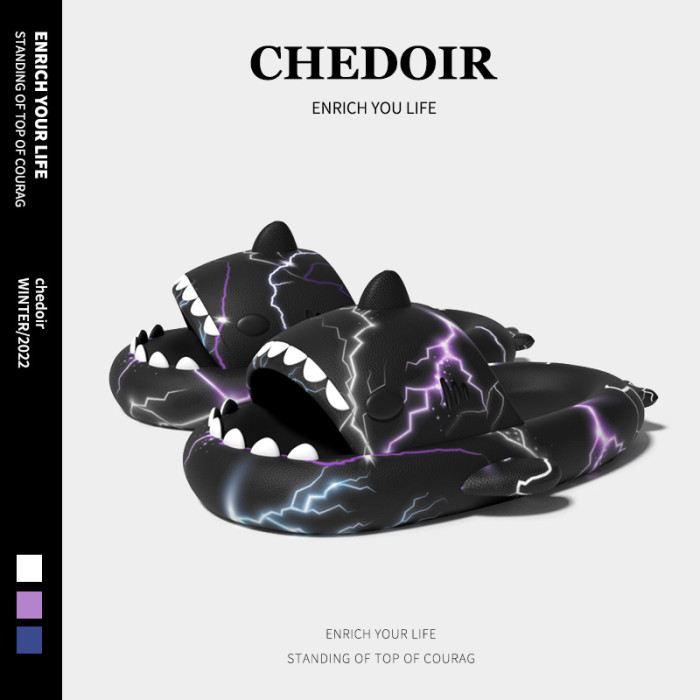 踩屎感軟底鯊魚拖鞋男女夏外穿厚底居家涼拖eva情侶沙灘一字拖鞋