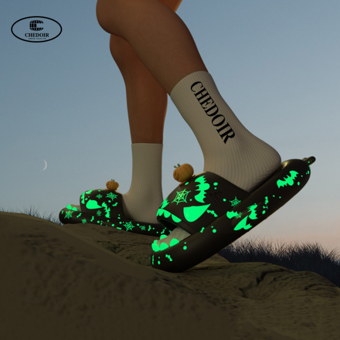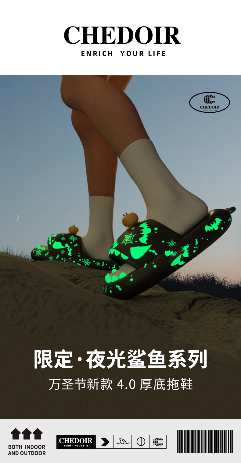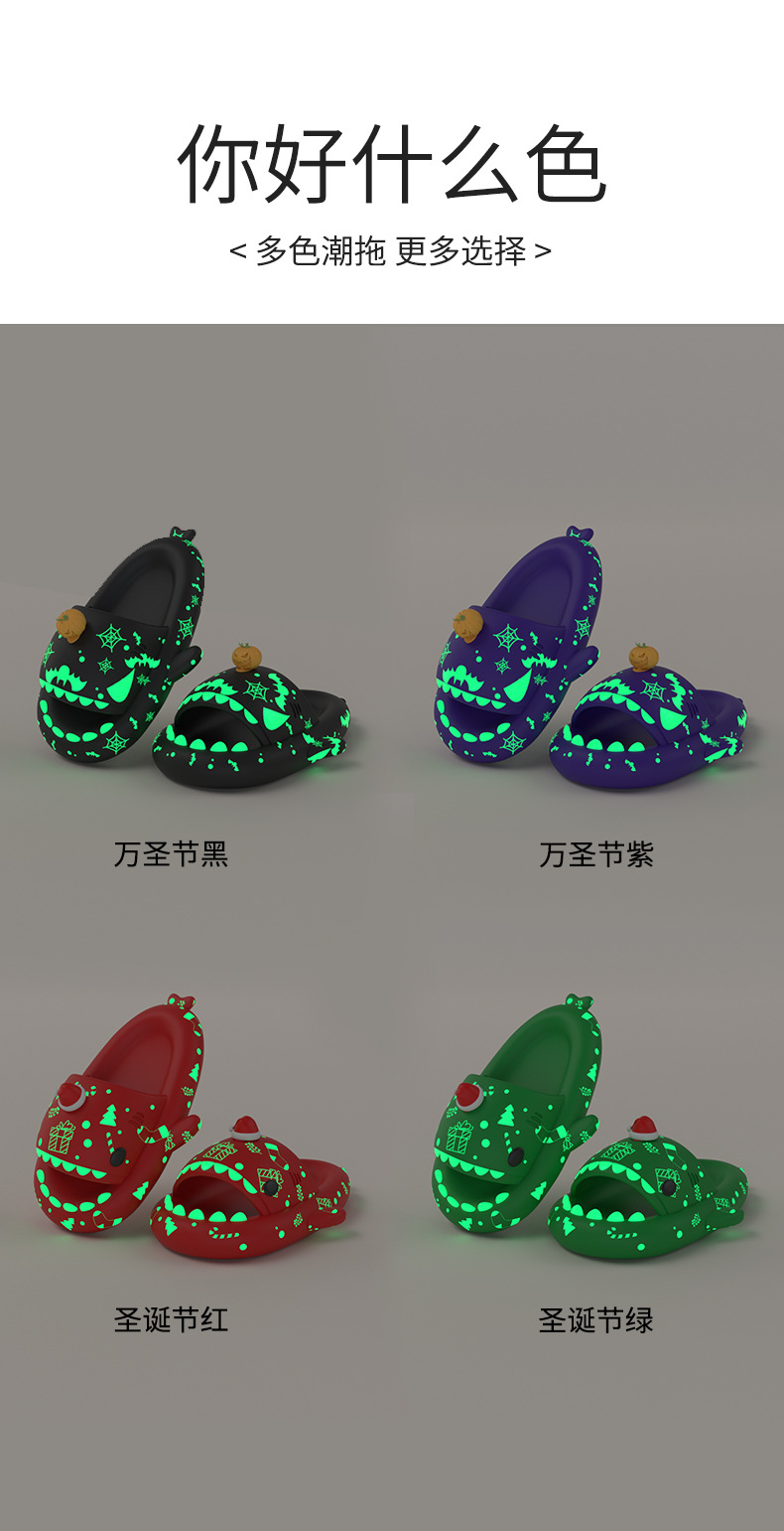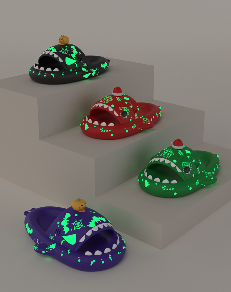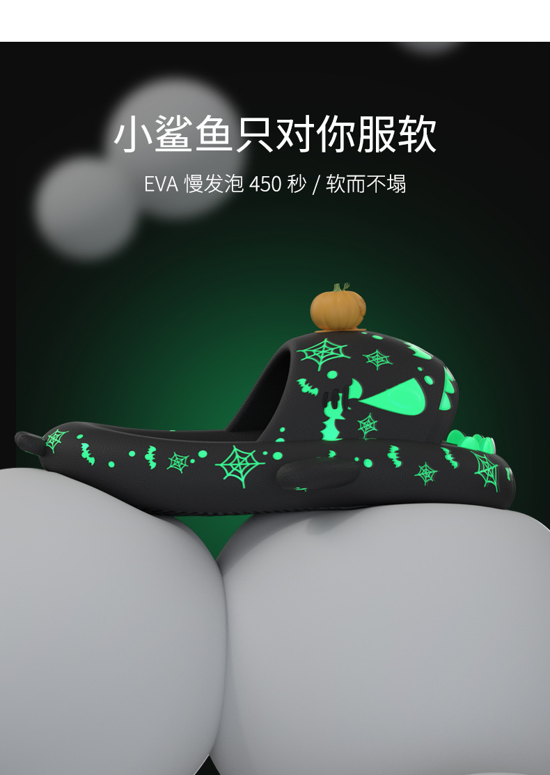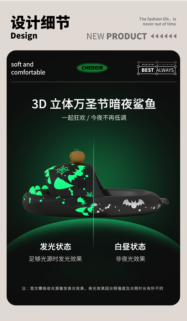 爆款萬聖節夜光搞怪鯊魚拖鞋 情侶夏季防滑外穿ins居家室內拖