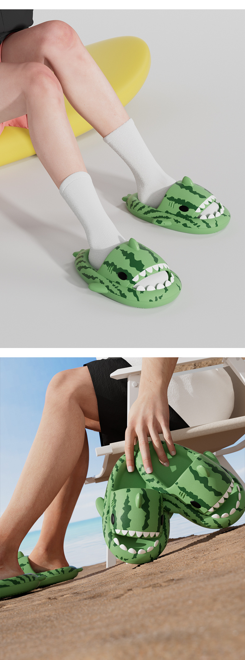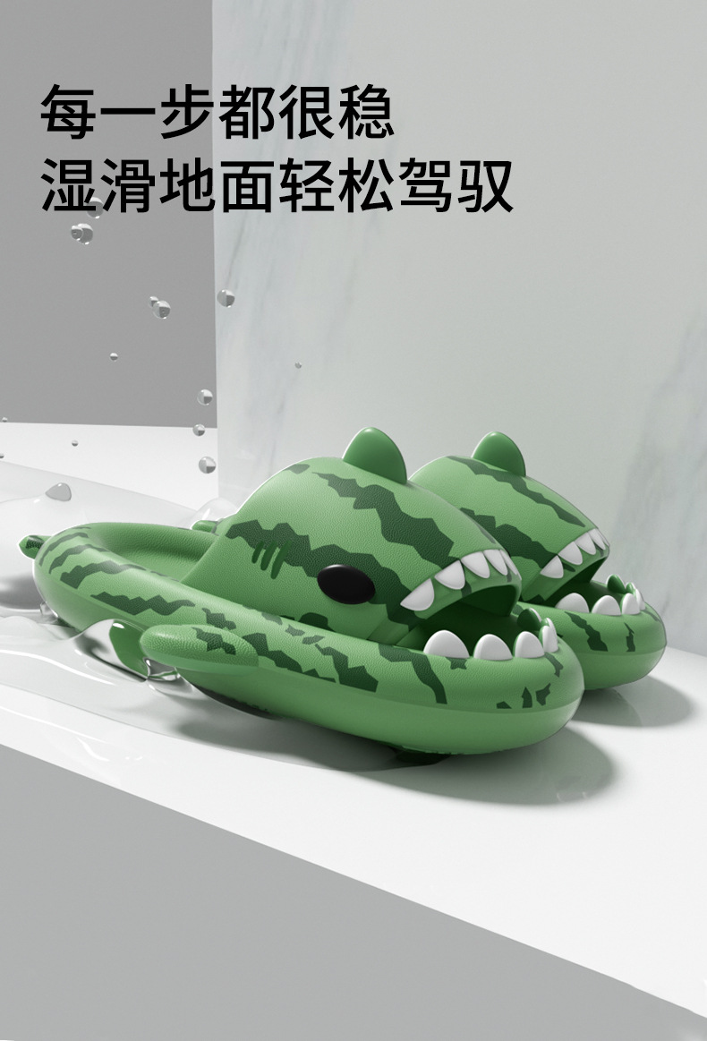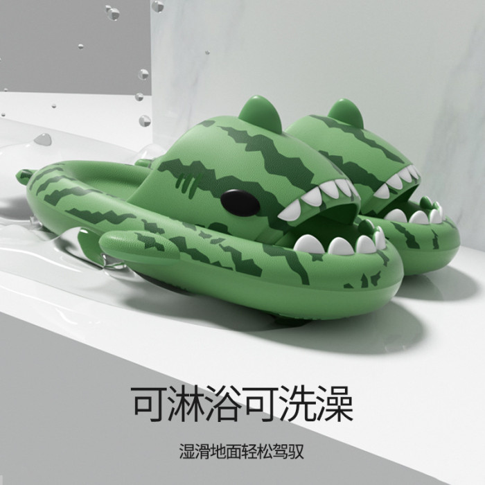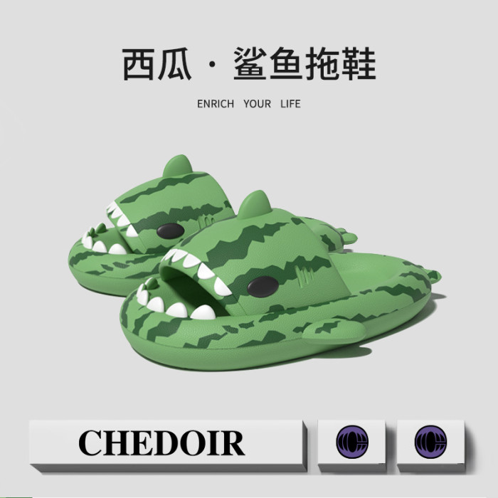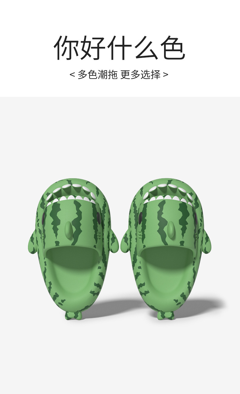 西瓜鯊魚拖鞋情侶夏季厚底踩屎感卡通批法家居休閒涼拖鞋