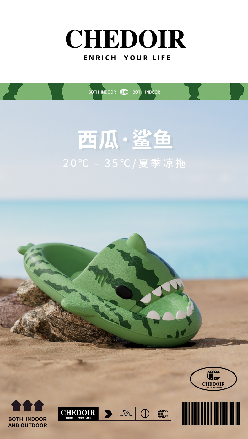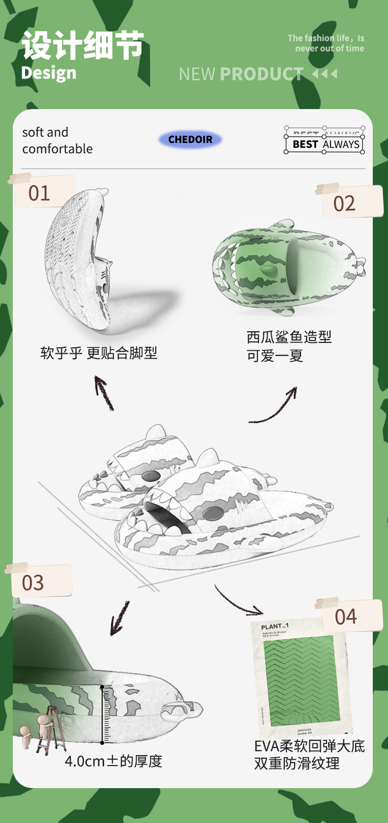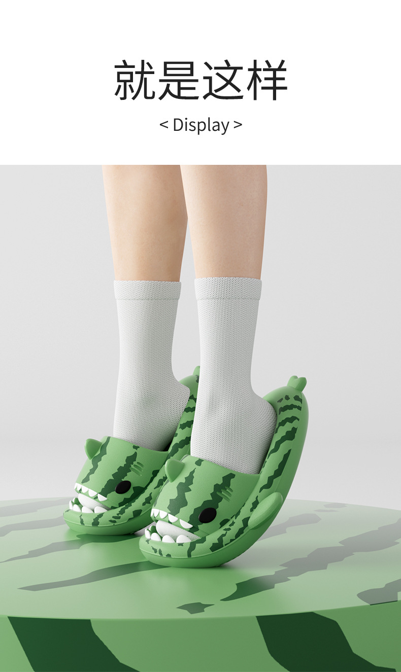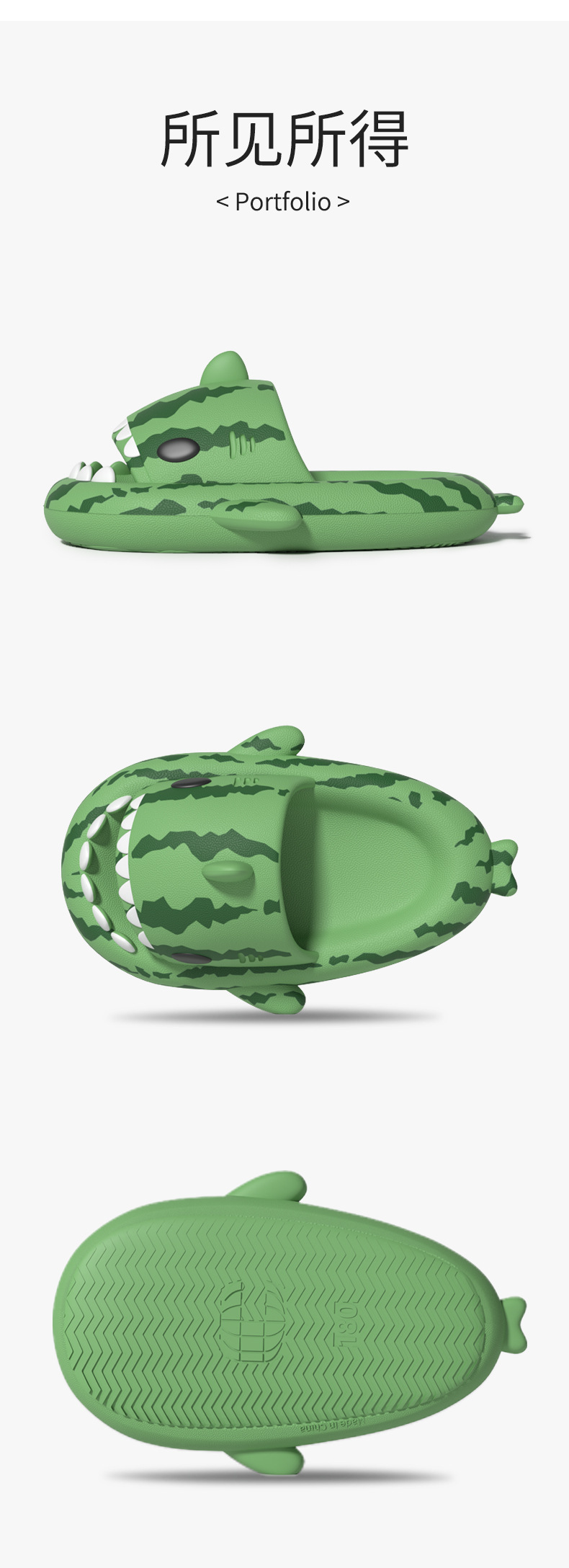 西瓜鯊魚拖鞋情侶夏季厚底踩屎感卡通批法家居休閒涼拖鞋