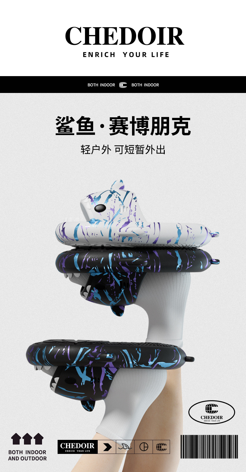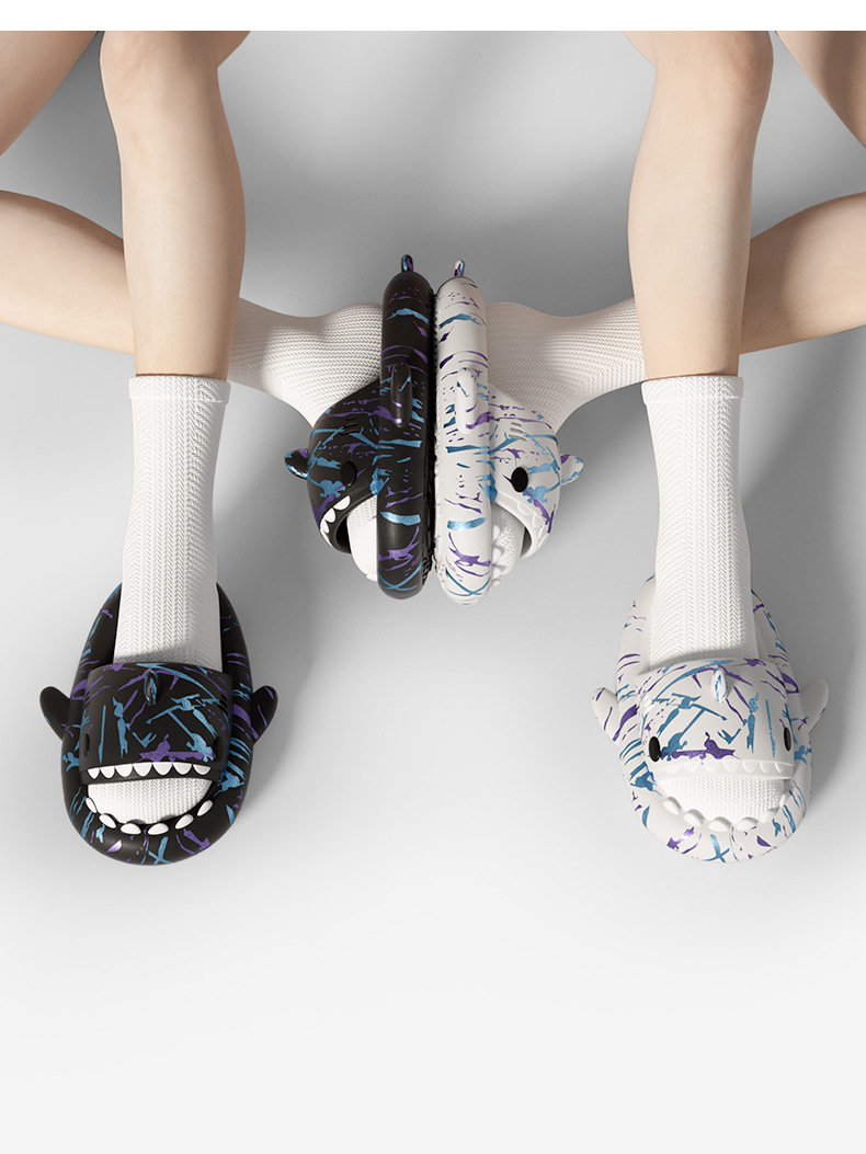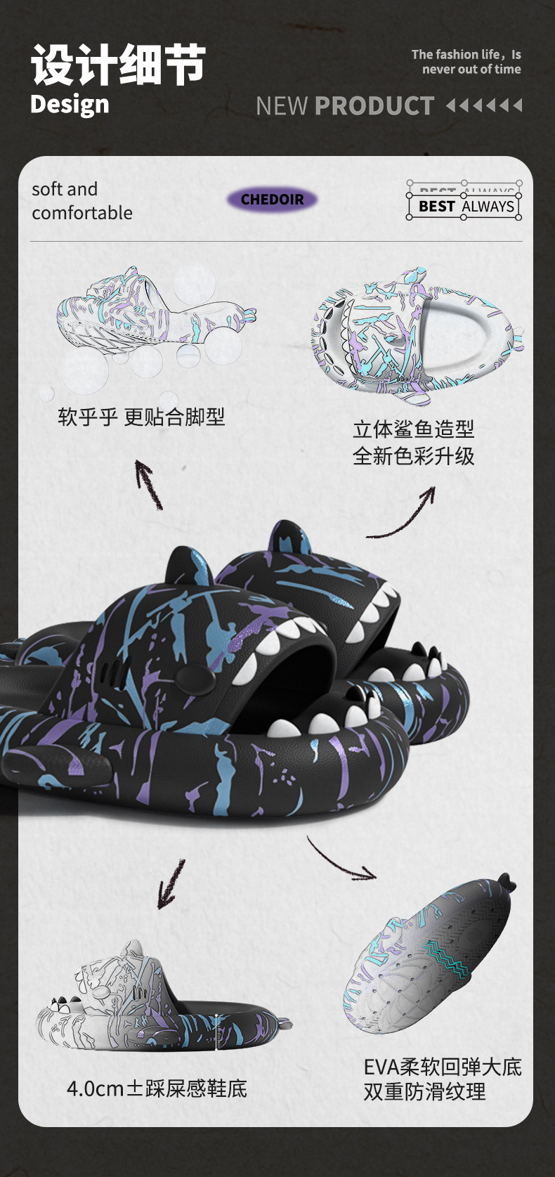 龐克鯊魚拖鞋夏季爆款居家情侶外穿防滑潮流ins踩屎感涼拖鞋