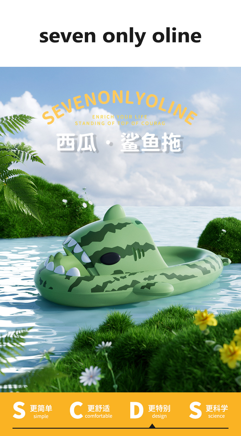 官方正版小鯊瓜兒童夏季拖鞋厚底踩屎感防滑室內可愛鯊魚拖鞋