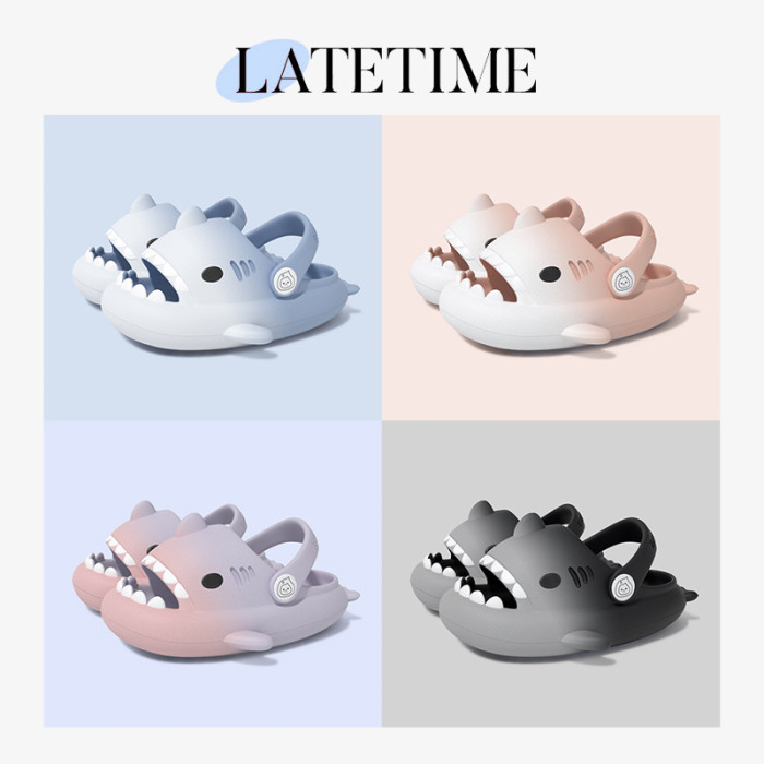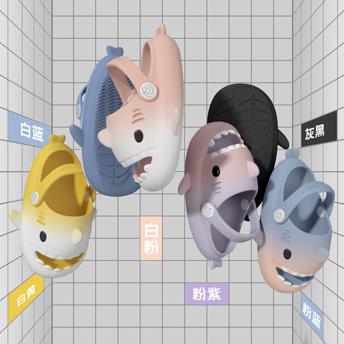 漸變鯊魚兒童拖鞋夏季男童女童可愛軟底防滑室內嬰幼兒寶寶洞洞鞋