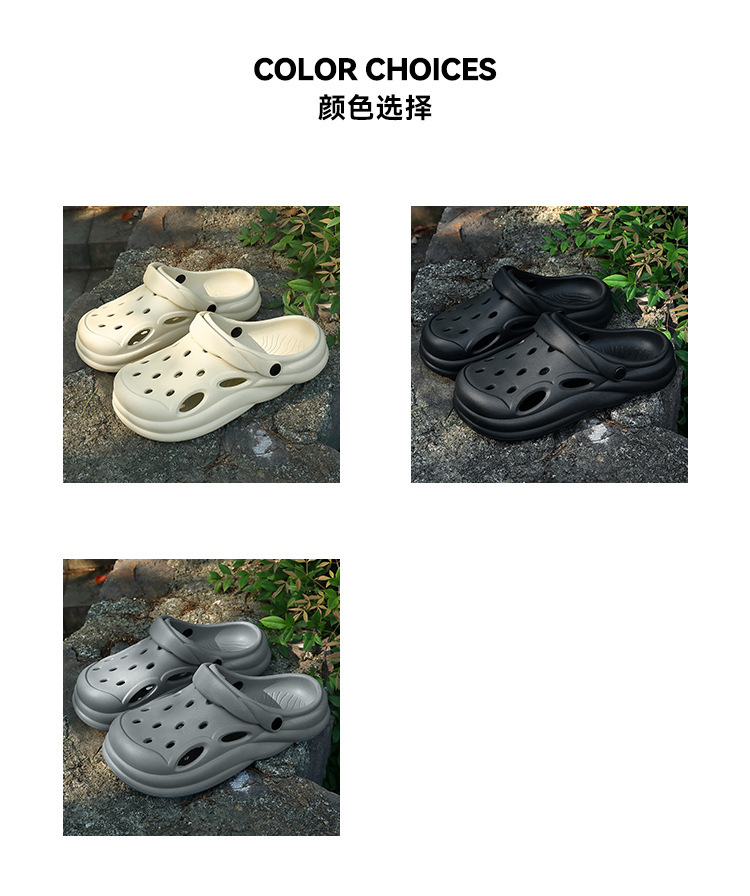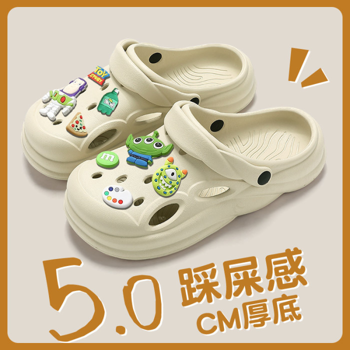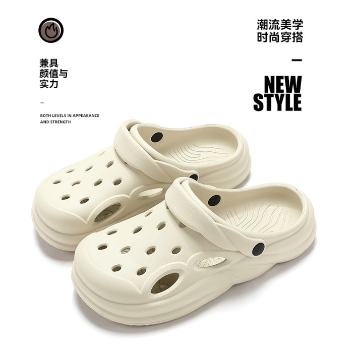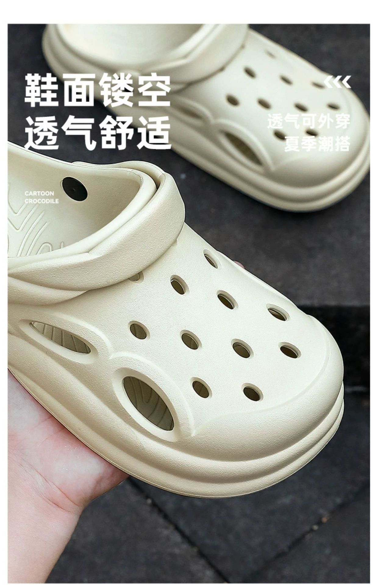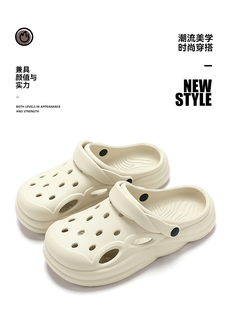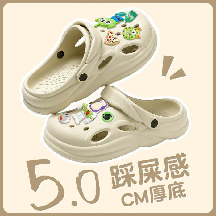 踩屎感洞洞鞋夏季女款外穿戶外厚底防滑包頭半涼拖鞋女士夏季