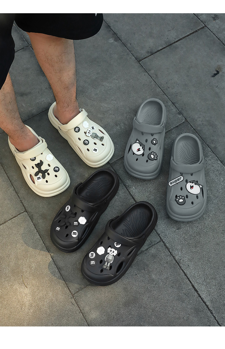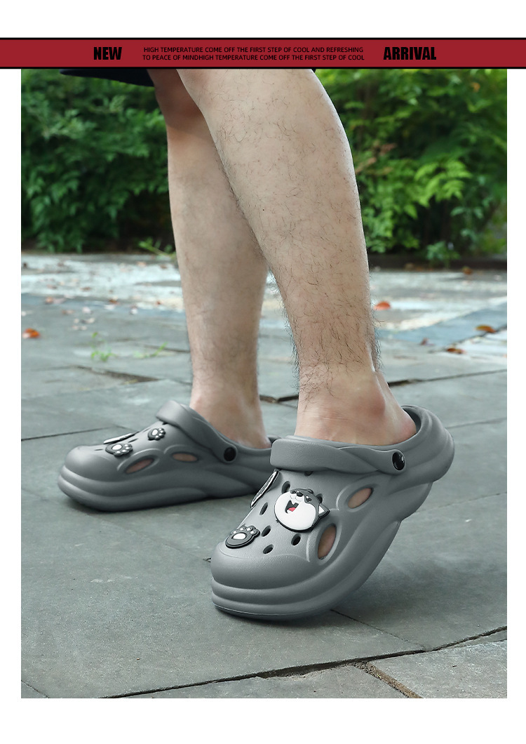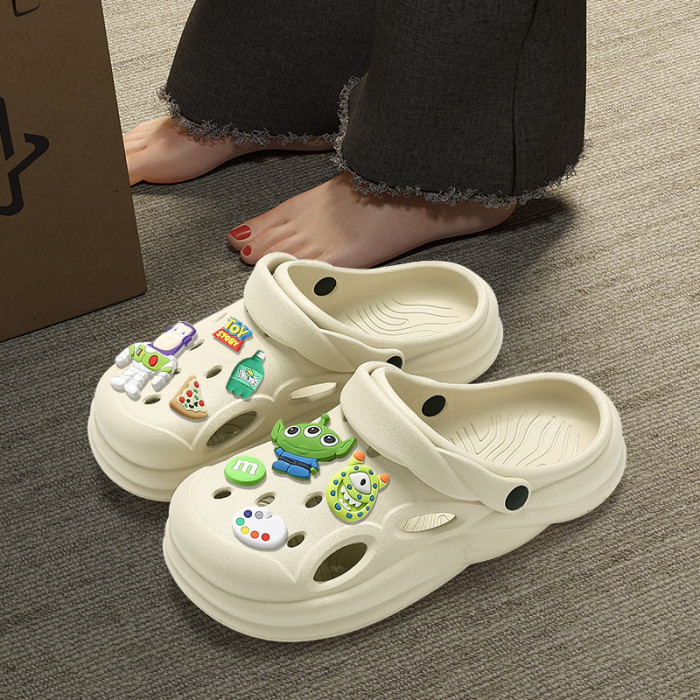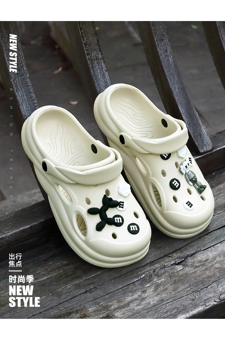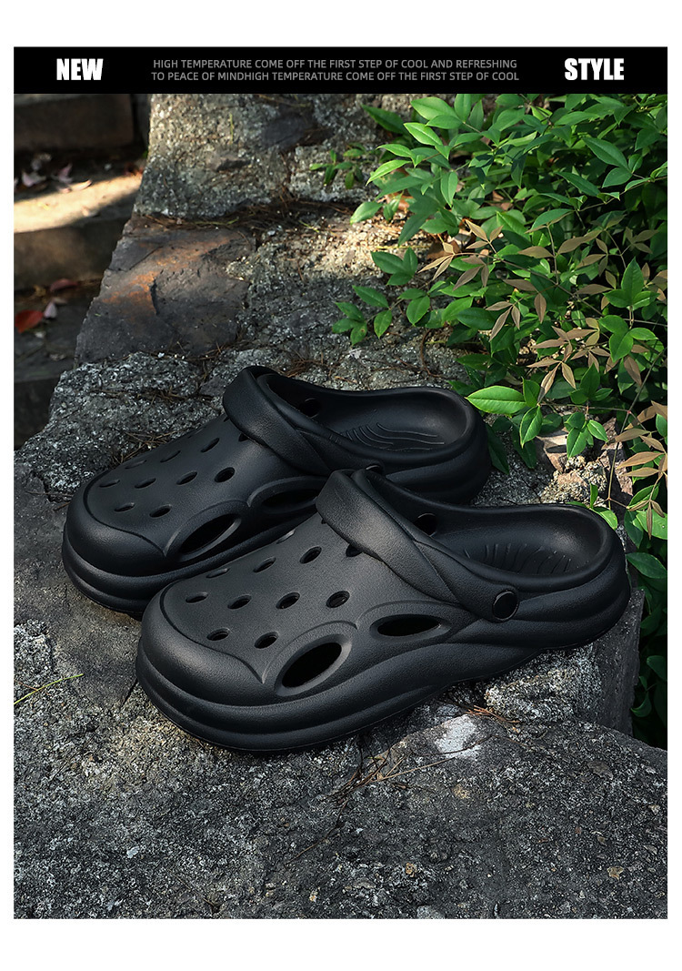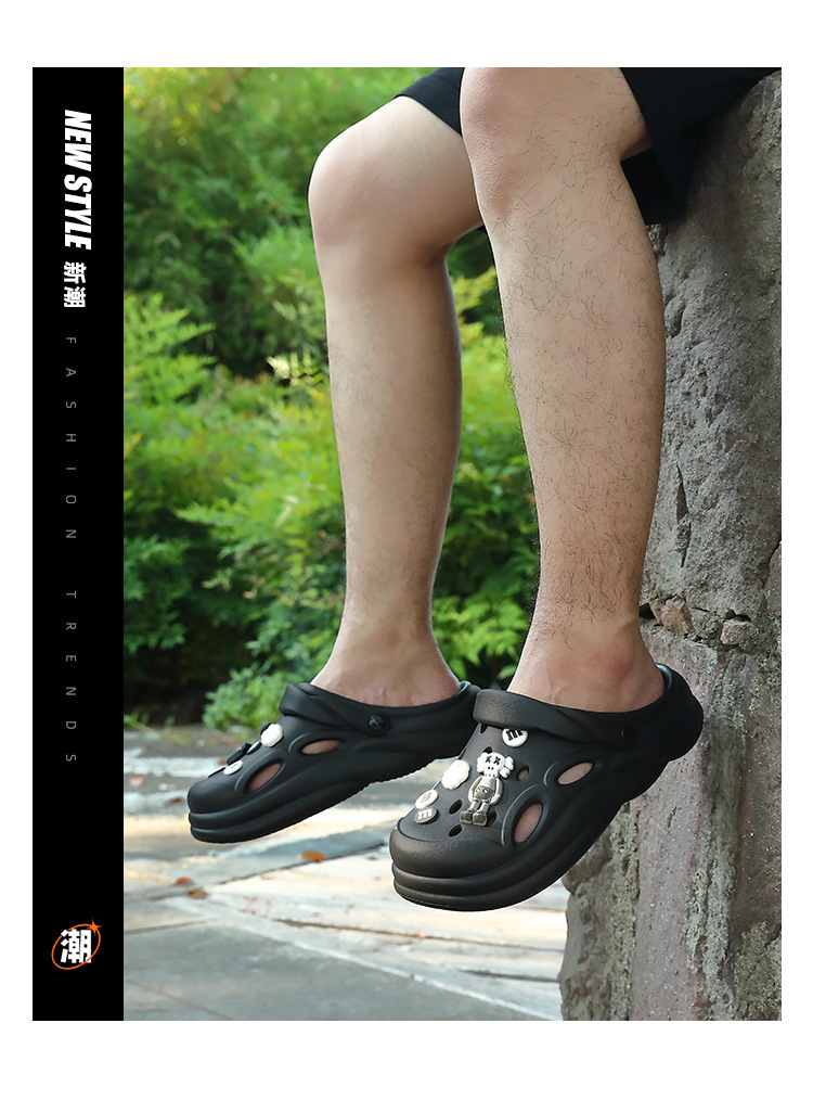 踩屎感洞洞鞋夏季女款外穿戶外厚底防滑包頭半涼拖鞋女士夏季