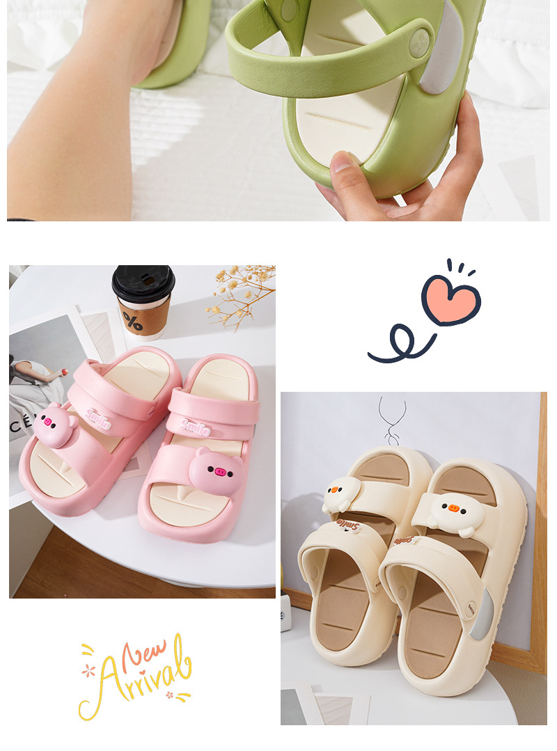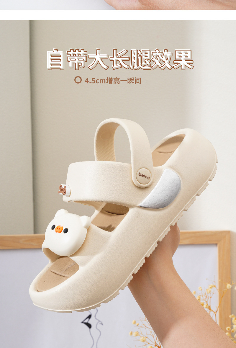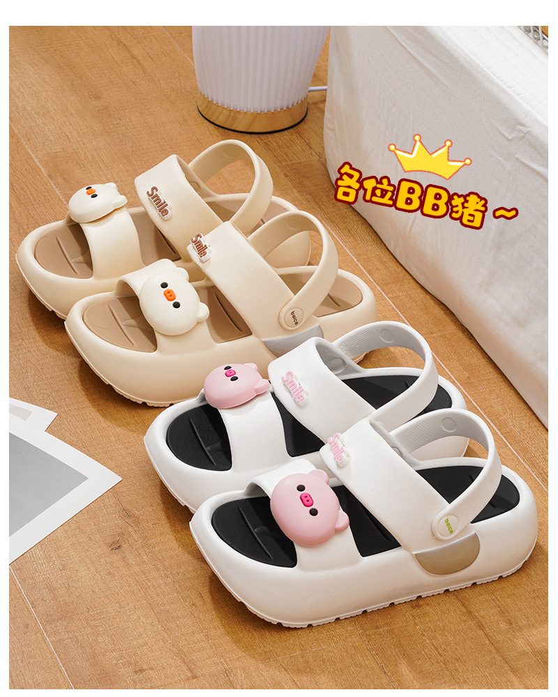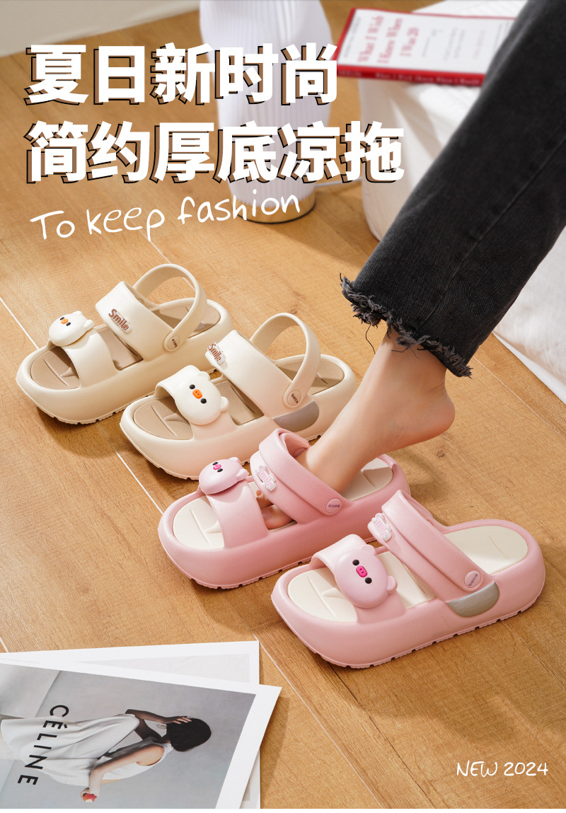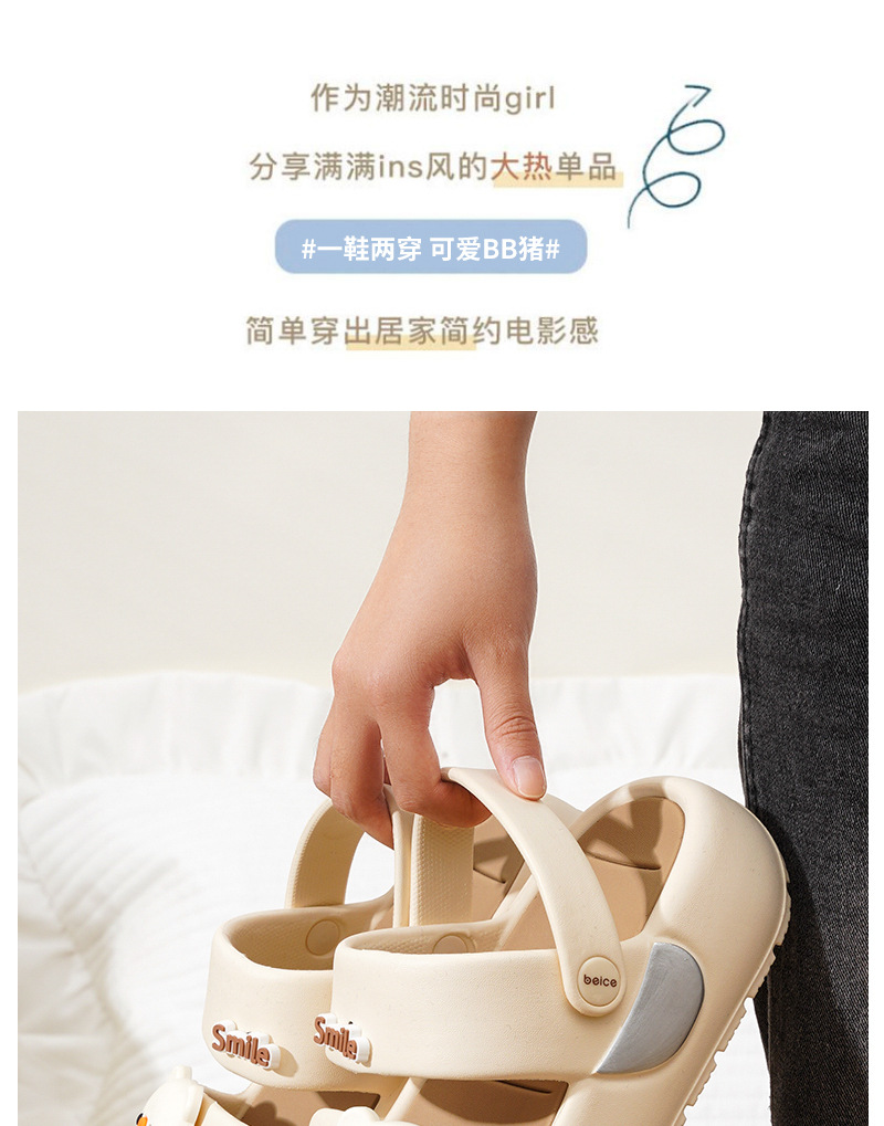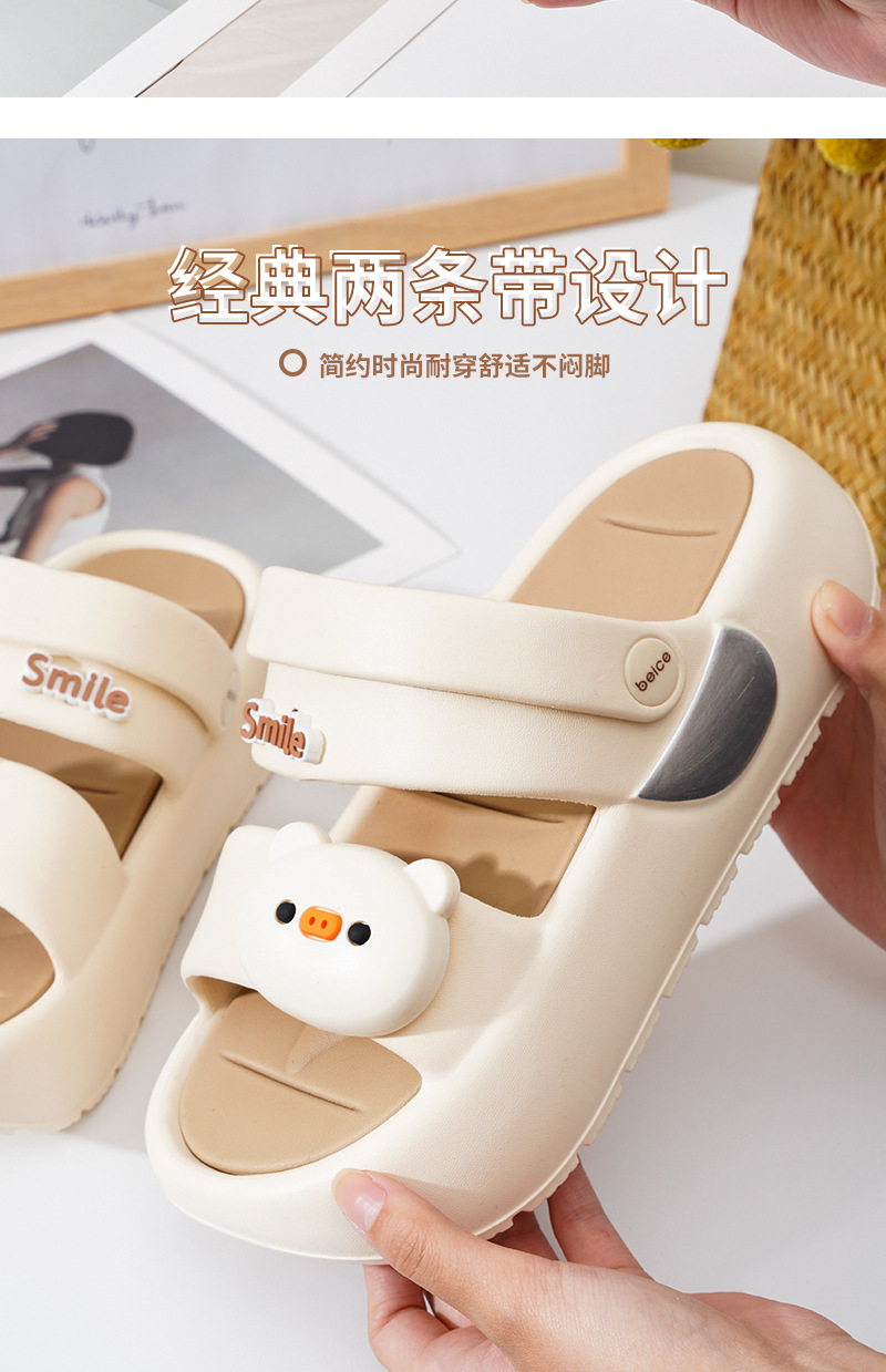 可愛雙條帶涼鞋女厚底踩屎感軟底時尚百搭外穿兩用沙灘涼拖鞋EVA