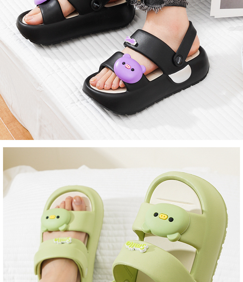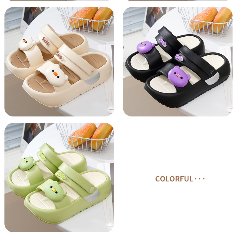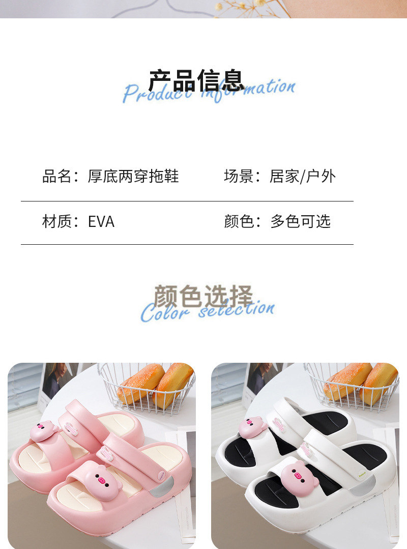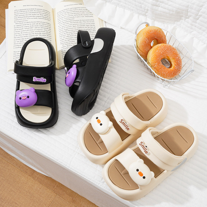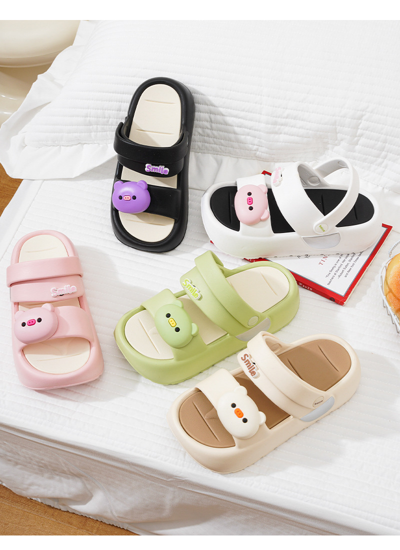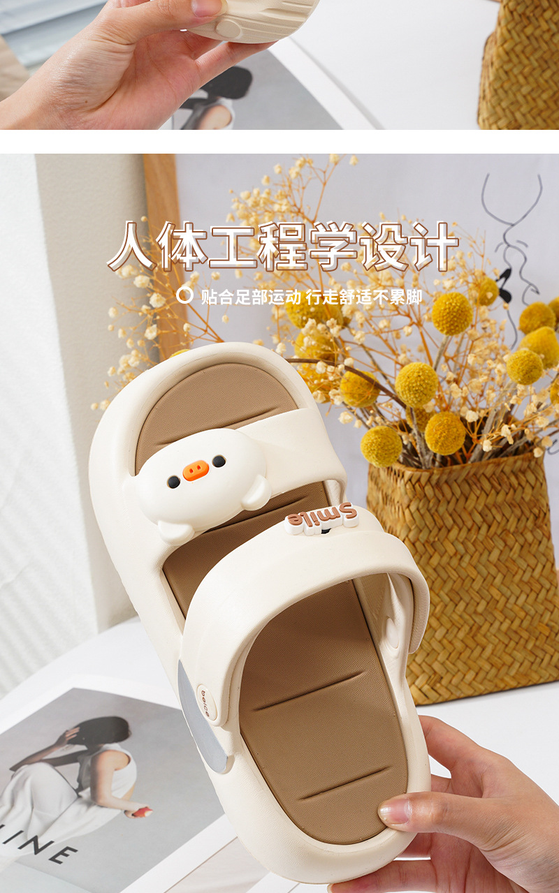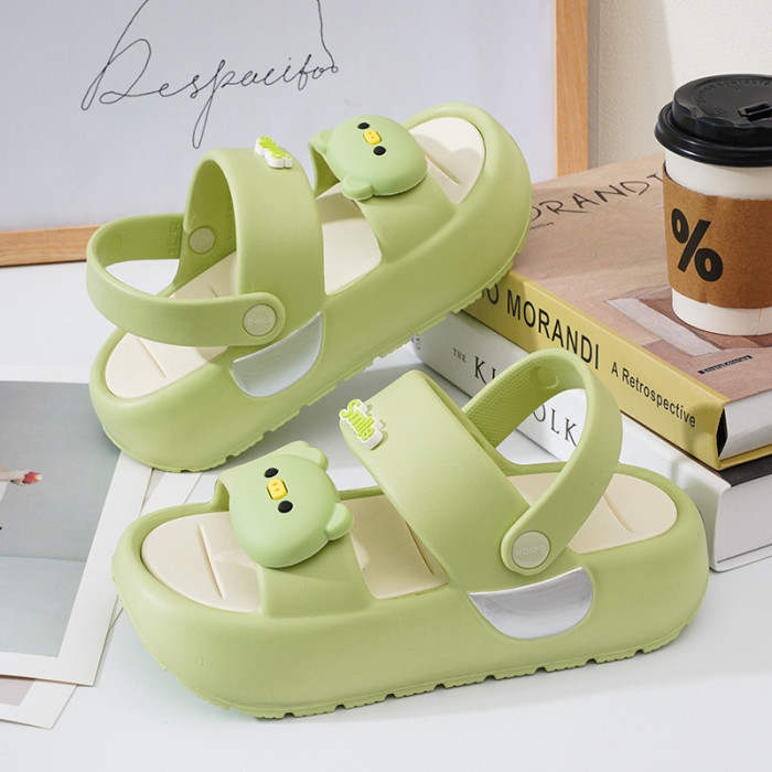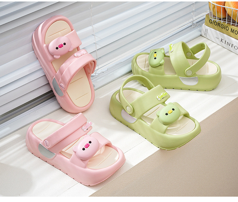 可愛雙條帶涼鞋女厚底踩屎感軟底時尚百搭外穿兩用沙灘涼拖鞋EVA
