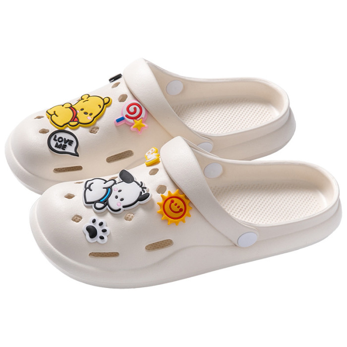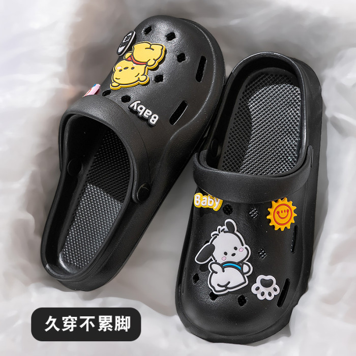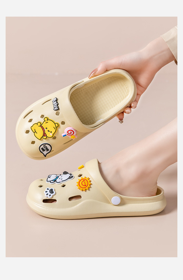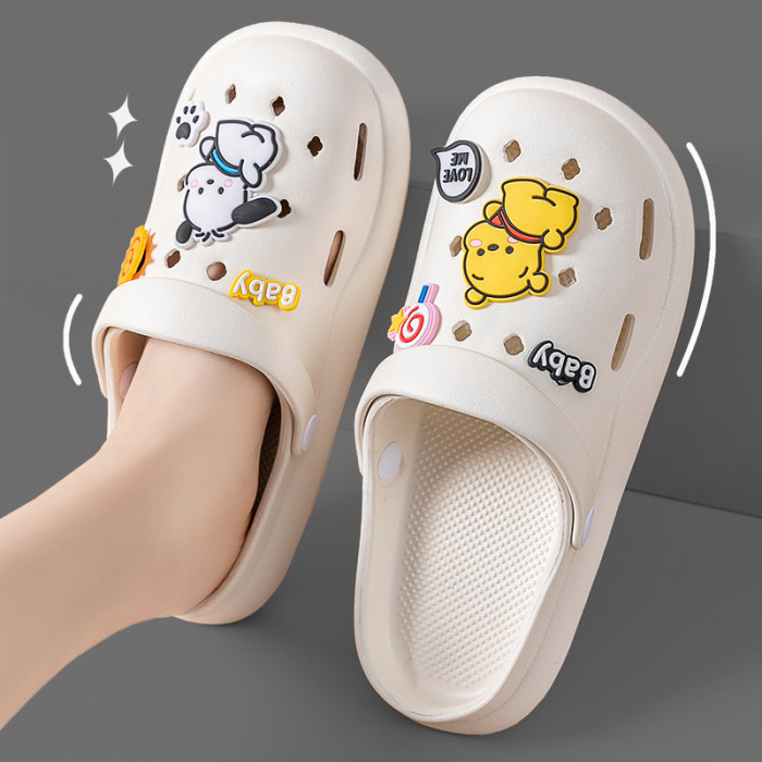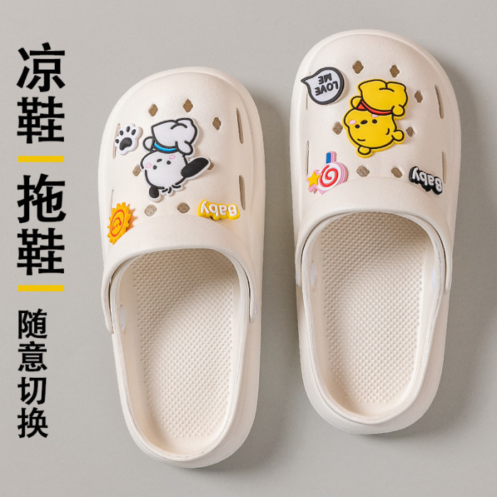 可愛小熊洞洞鞋女款夏季2024新款外穿踩屎感厚底家居包頭涼拖鞋