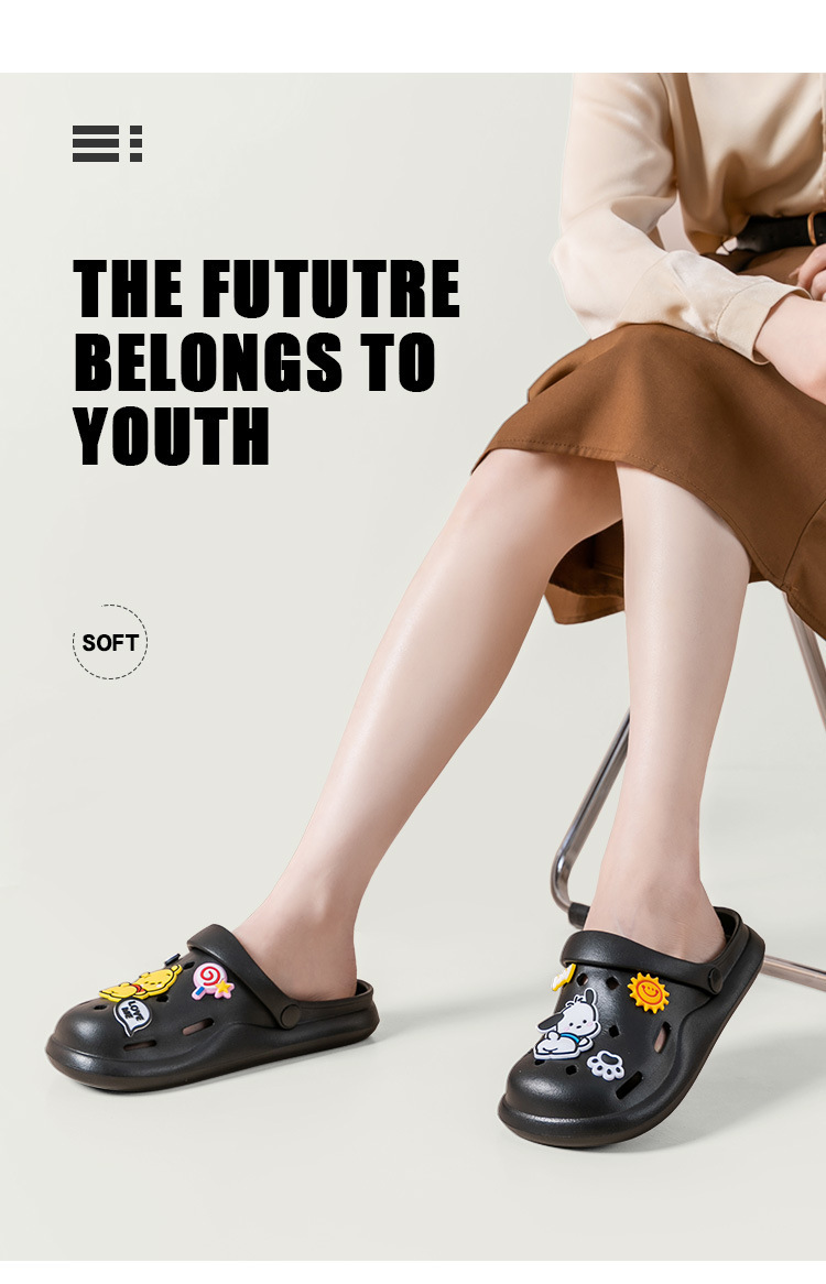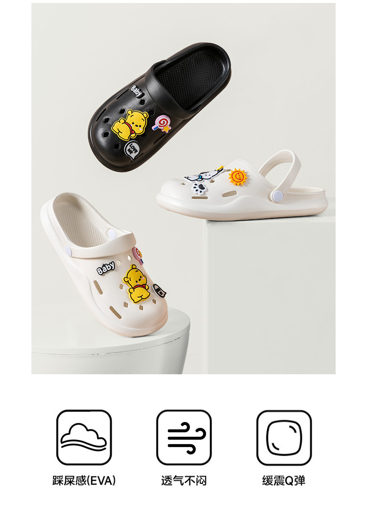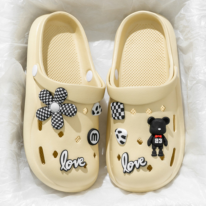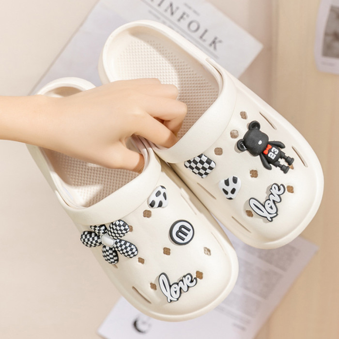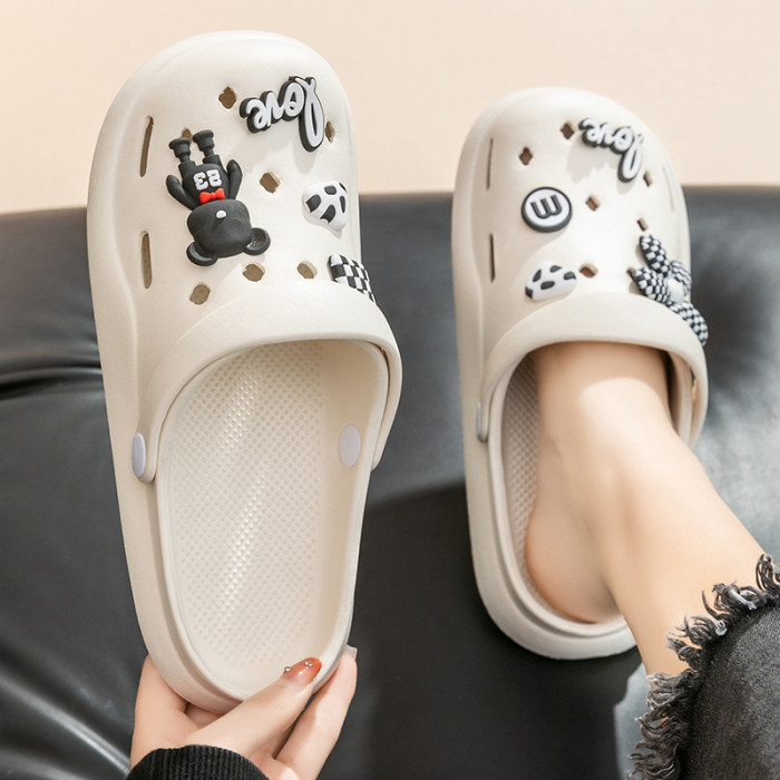 大花熊洞洞鞋女款夏季2024新款卡通外穿厚底踩屎感防滑包頭半拖鞋