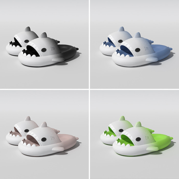 踩屎感漸變鯊魚情侶拖鞋男夏季外穿軟底防滑eva卡通厚底涼拖鞋女